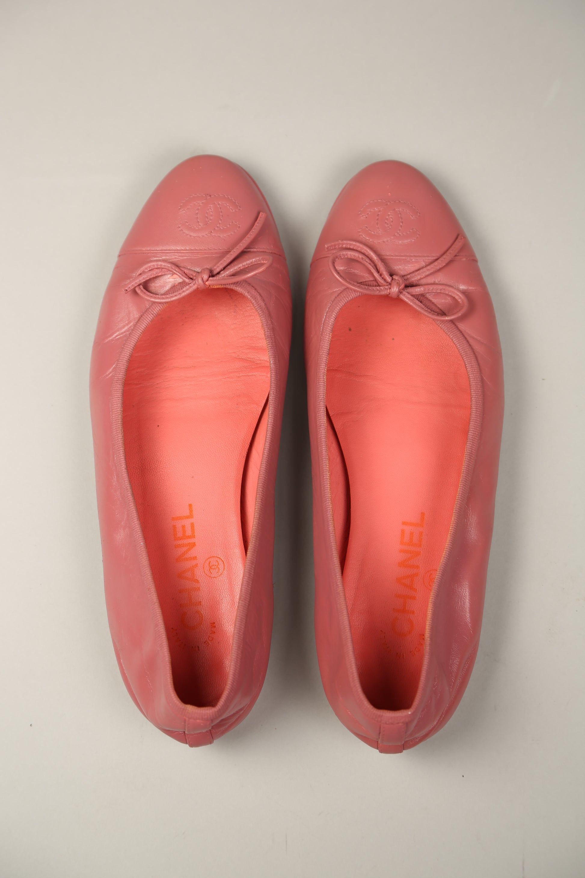 These elegant Chanel ballerinas boast dark-pink shade, making them a standout piece for any Chanel lover. The toe is beautifully accented with the distinctive stitched CC logo and the brand’s iconic signature bow, adding that timeless Parisian charm. Refurbished and refreshed. The heels have been replaced, and the shoes have been professionally recolored. They show normal signs of wear, including wrinkles on the leather and wear on the soles, all consistent with use. A lovely, unique pair that blends classic Chanel design with a rare, eye-catching color—perfect for adding a chic pop to any outfit.