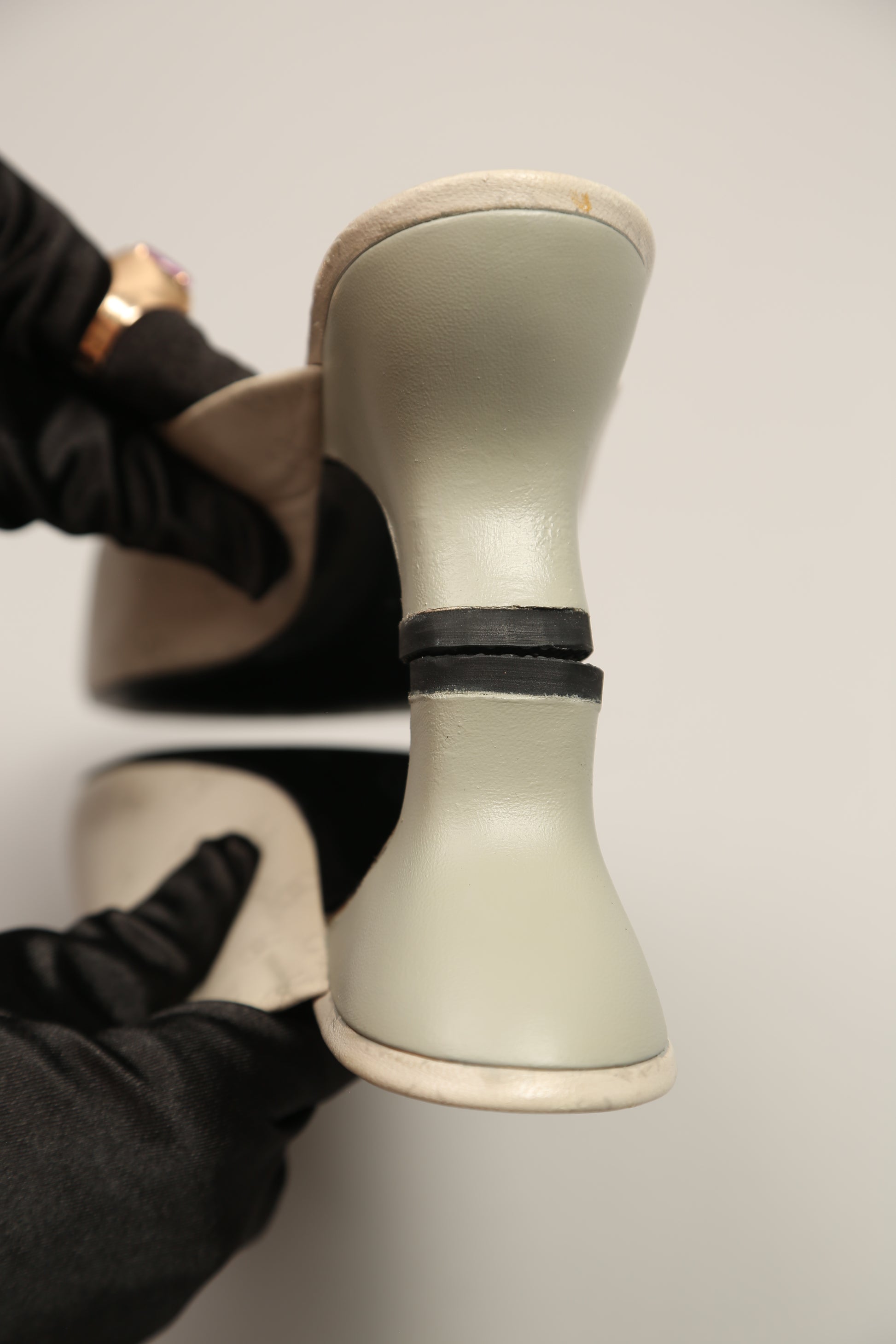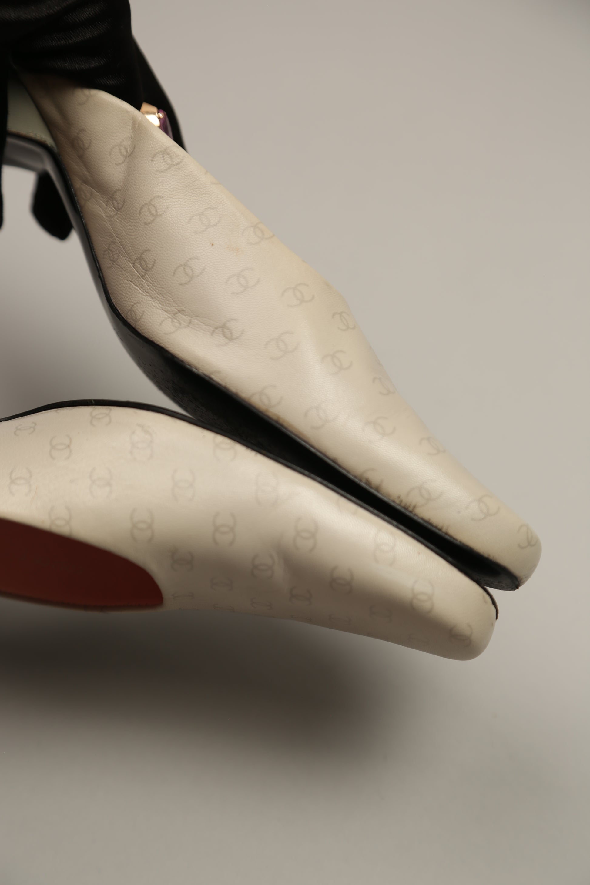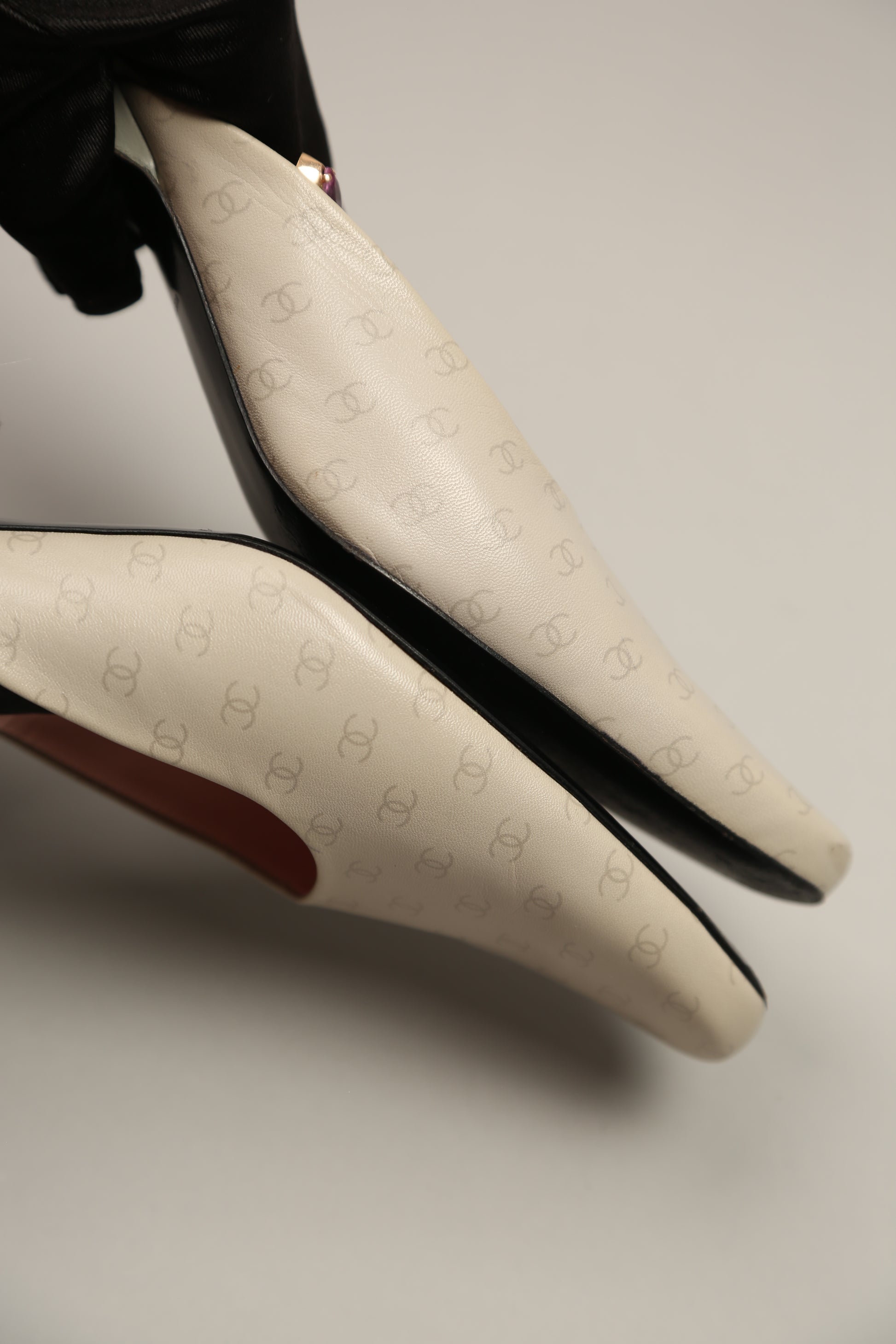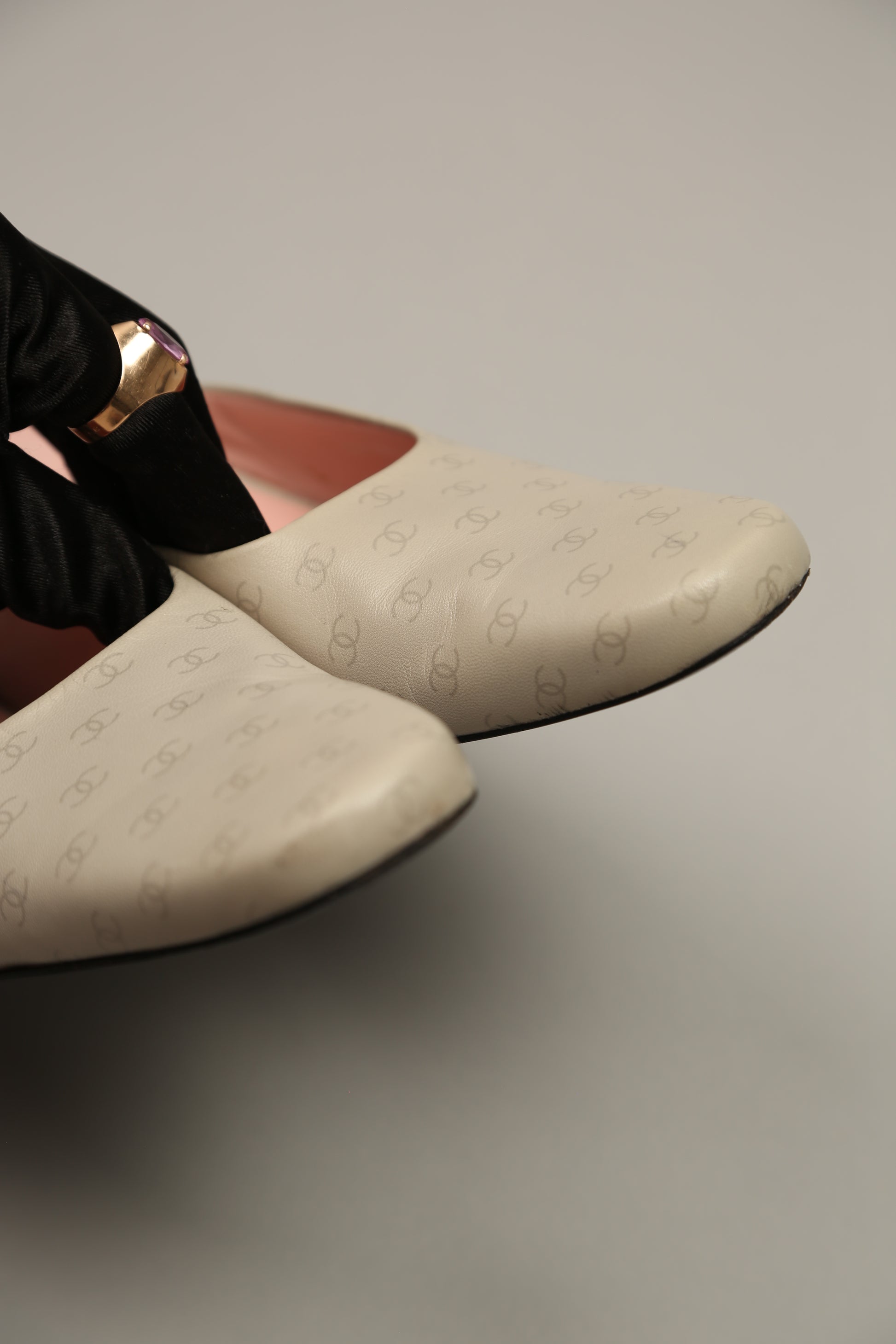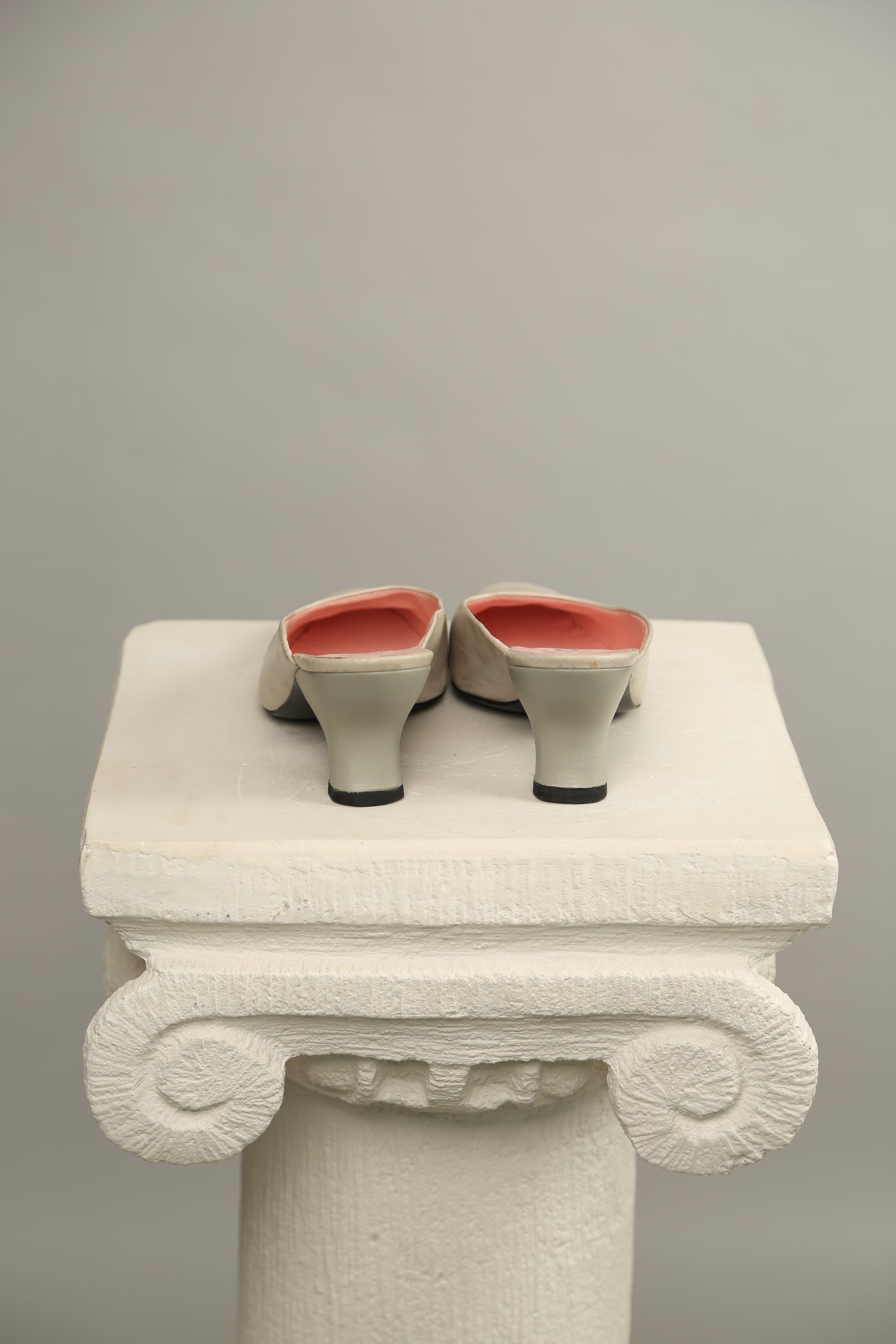 Iconic Vintage Chanel CC Logo Mules – 90s Pastel Grey