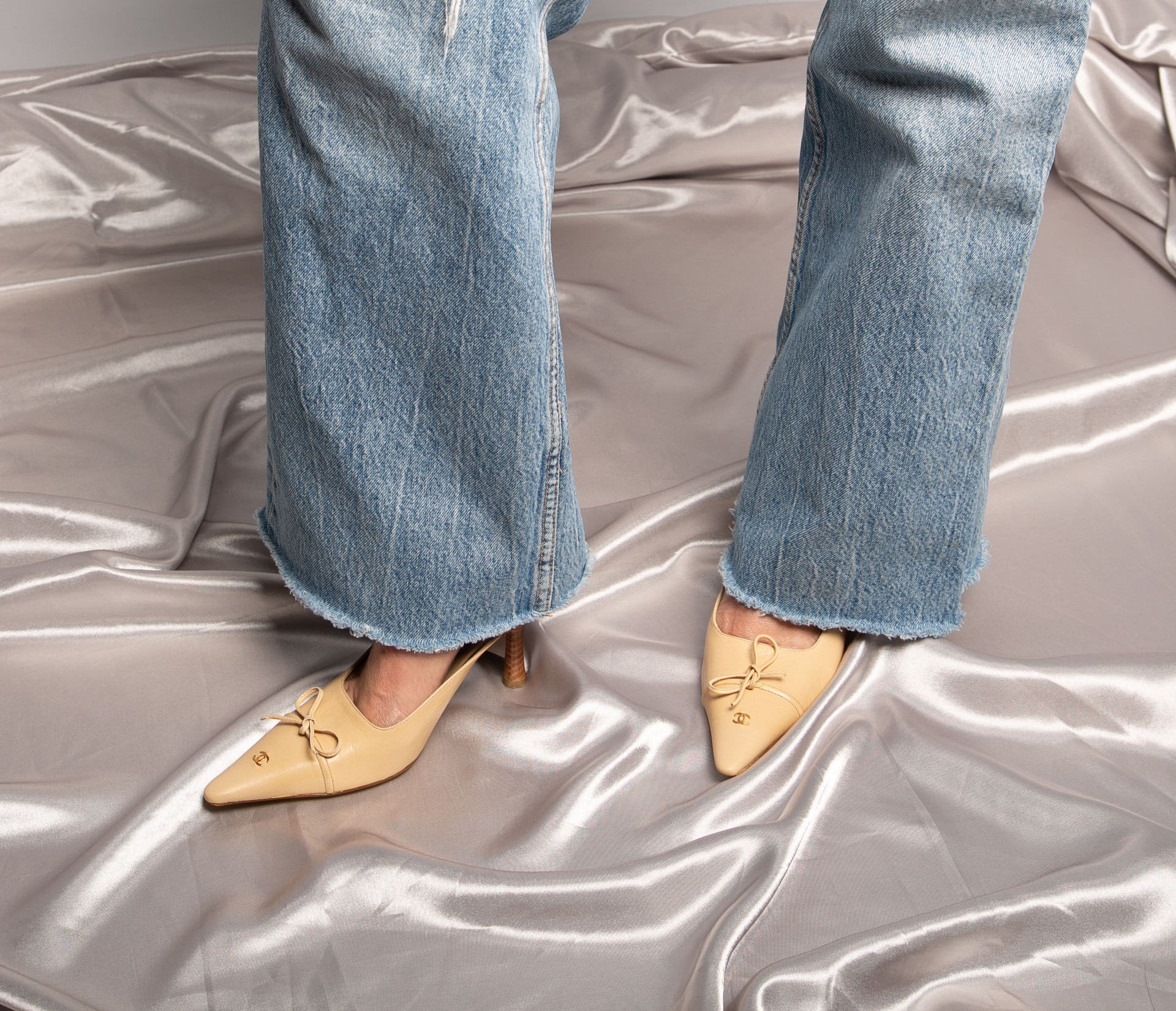Made with super soft lambskin. Very rare vintage pair of shoes. Cream Color