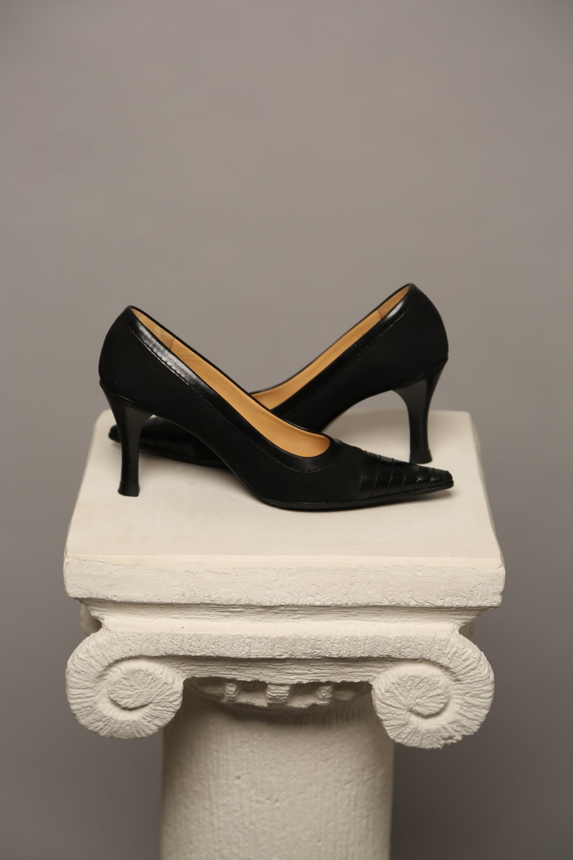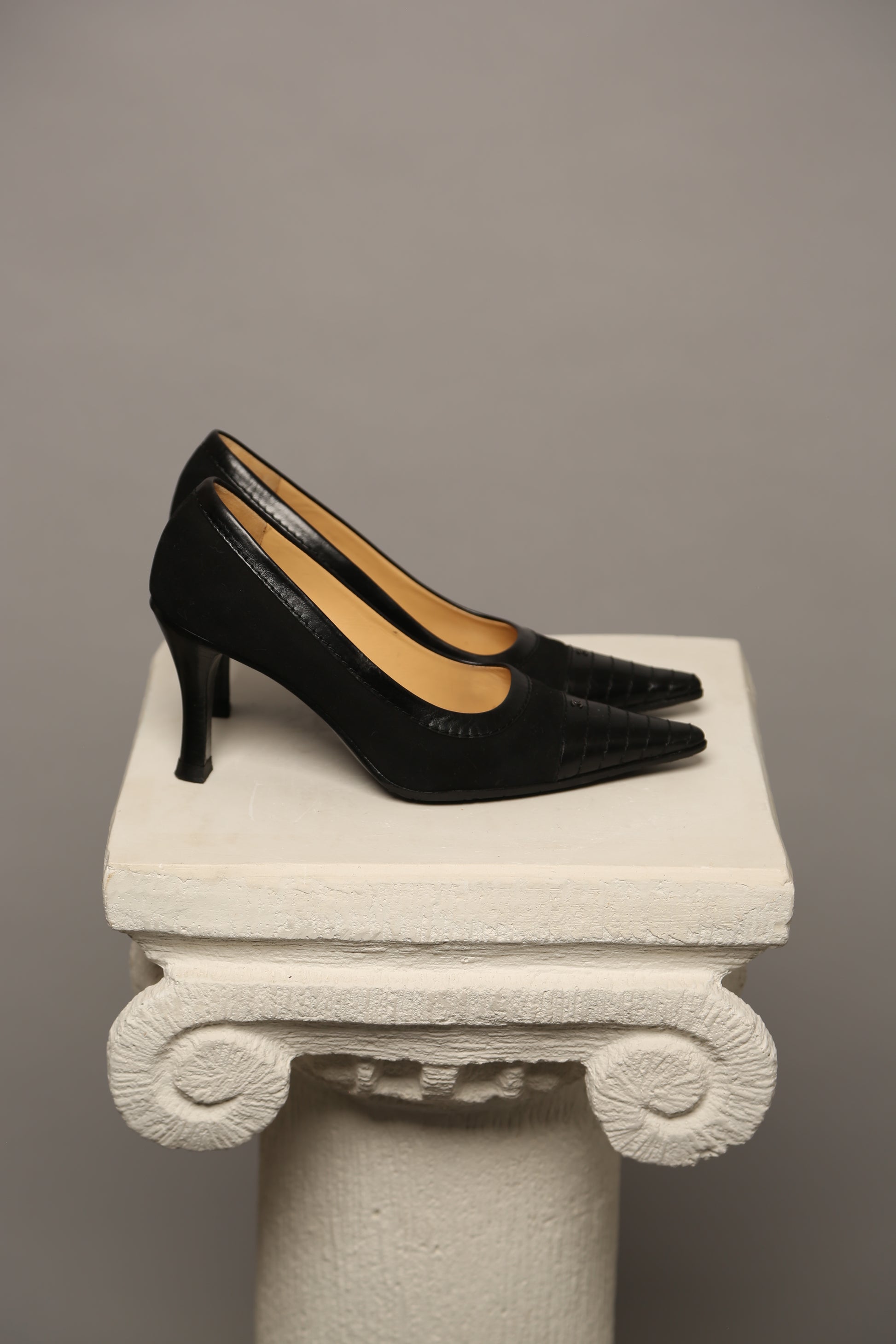 All shoes are in good pre-loved vintage condition, showing normal signs of wear. There can be a little discoloration or little scuffs and scratches on some of the materials. Every pair of VintyLux shoes has been professionally cleaned and repaired if required by our cobbler.
