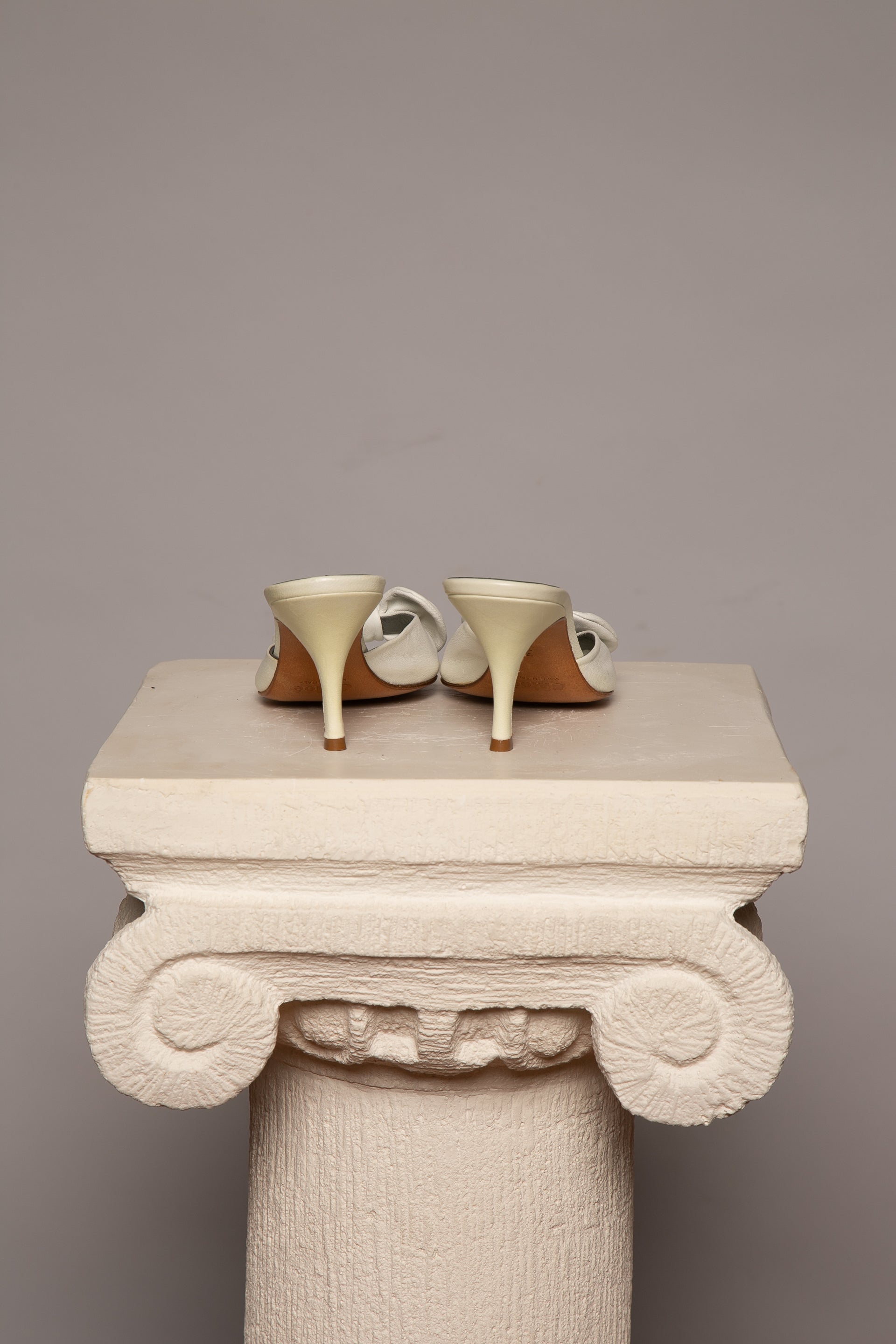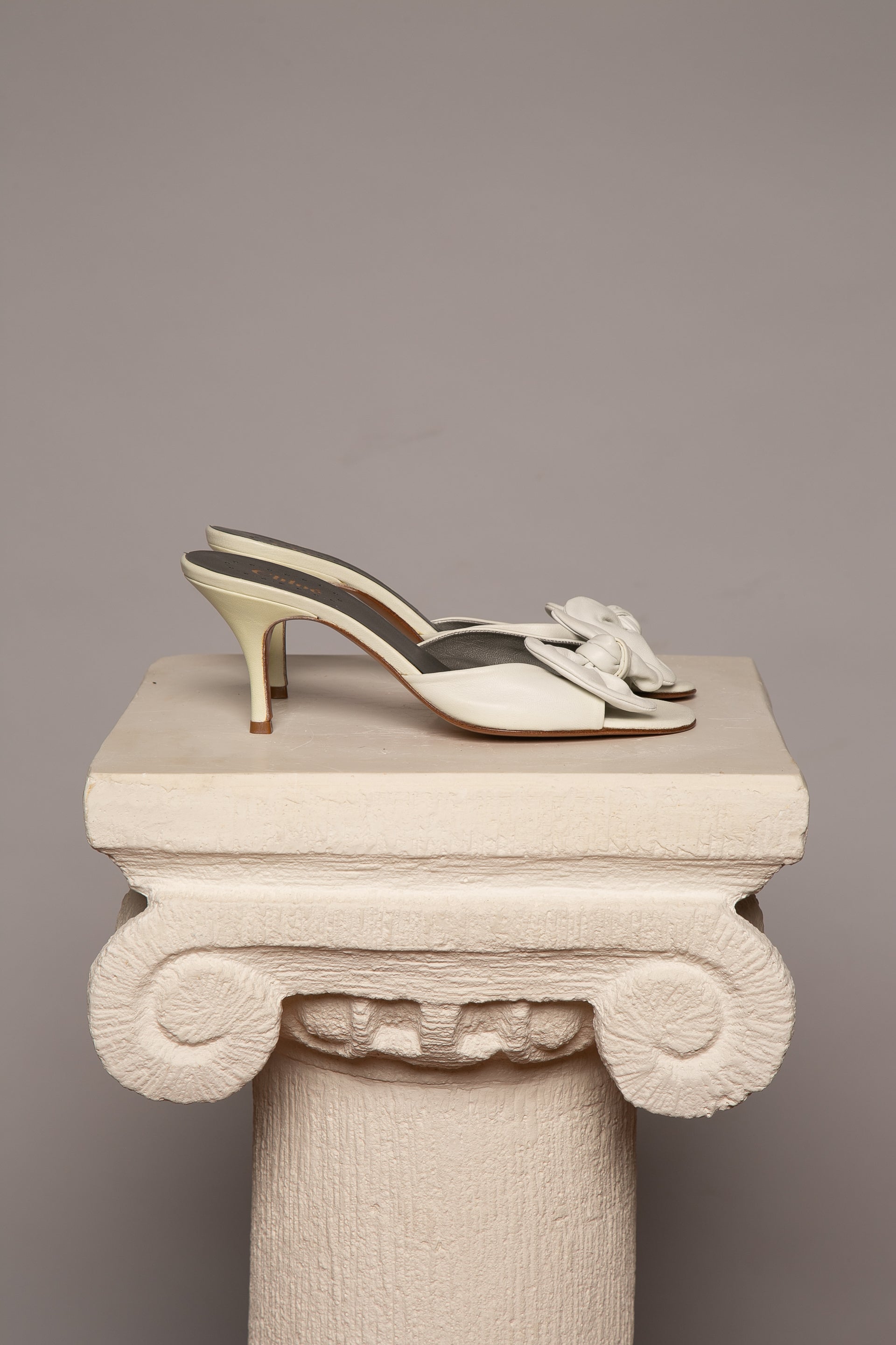 Brand new, very cute sandals with a bow on top. Made with the softest lambskin leather. Due to the storage, there is some slight discoloration on the heels.