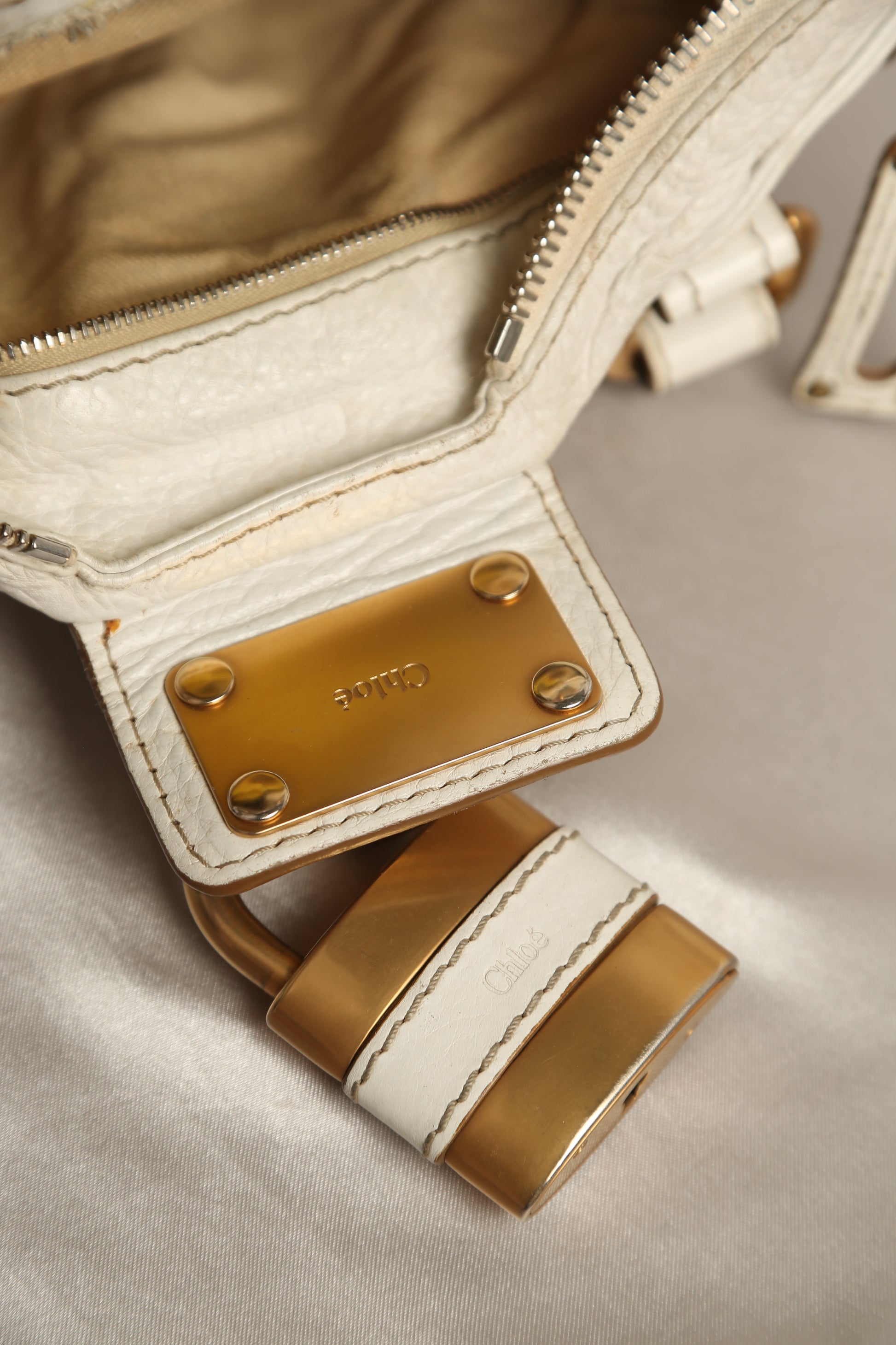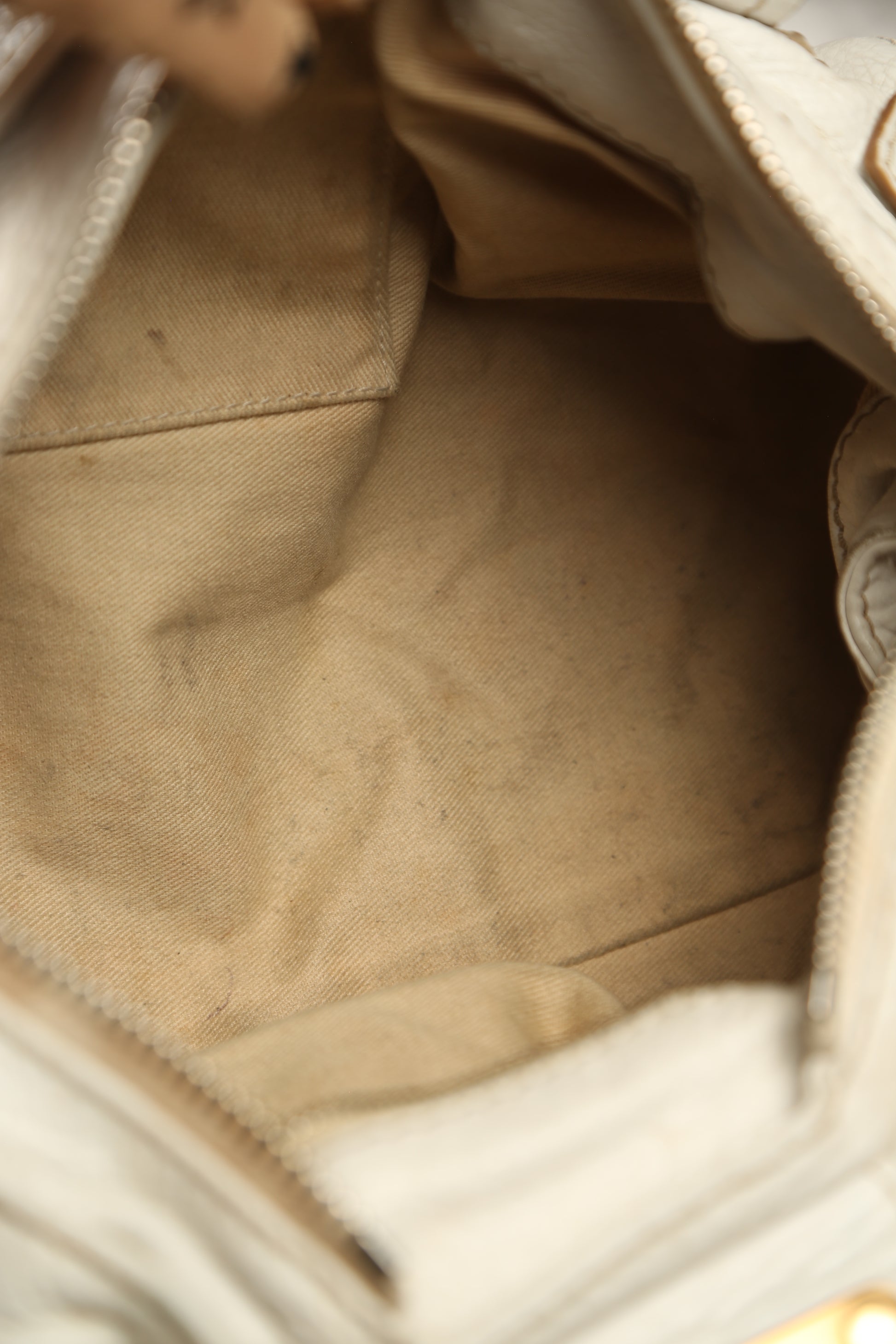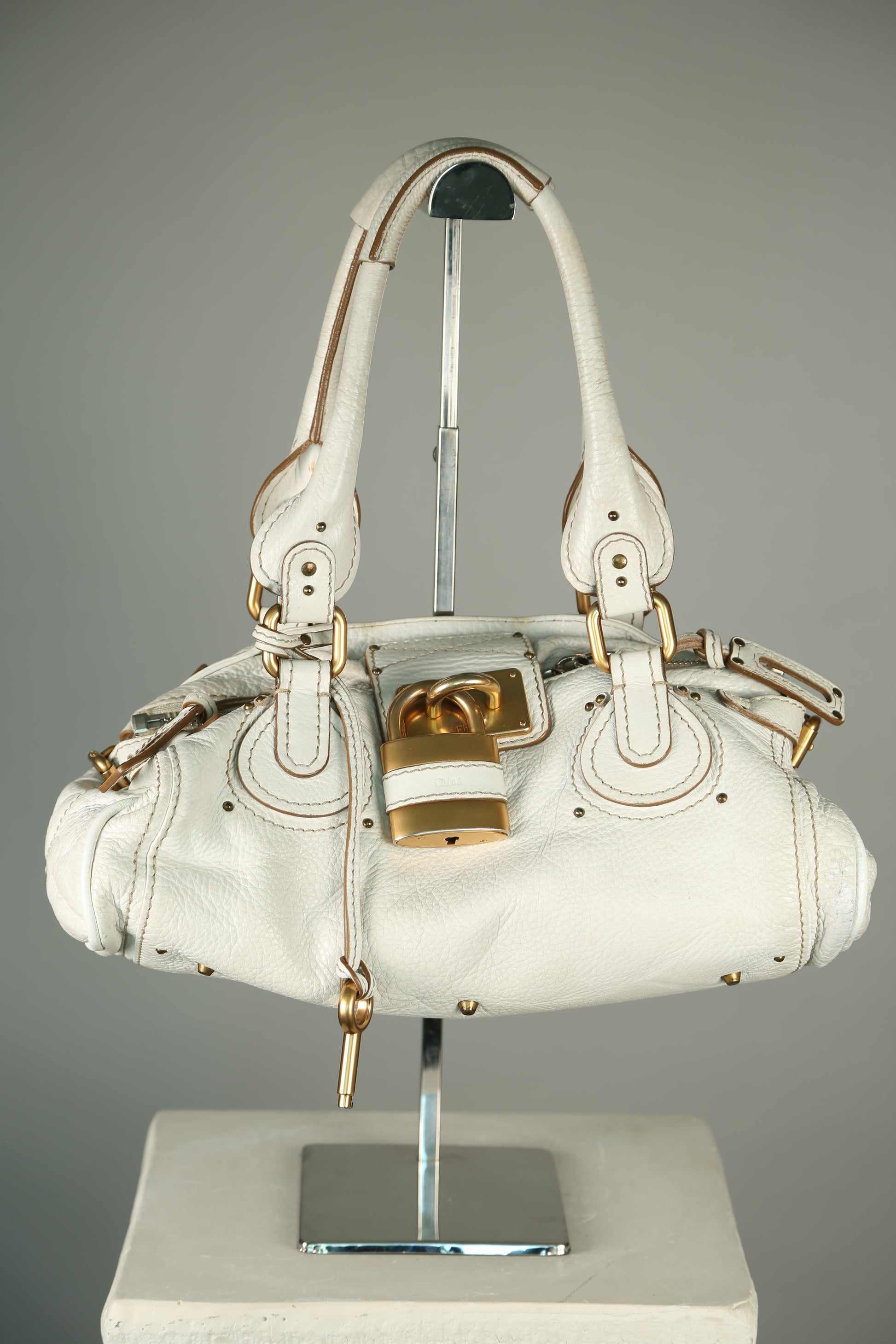 An absolute icon of early 2000s fashion, the Chloé Paddington bag was created under Phoebe Philo’s creative direction and debuted in 2005 to instant acclaim. With its soft, rounded silhouette and the signature oversized padlock, the Paddington quickly became one of the most sought-after bags of the decade—selling out before it even hit stores and sparking countless imitations. This bag has normal signs of wear on the corners and bottom. Hardware and clasp have fine scratches. Light dirt and stains inside. A true collector’s piece and a must-have for lovers of early Y2K luxury.