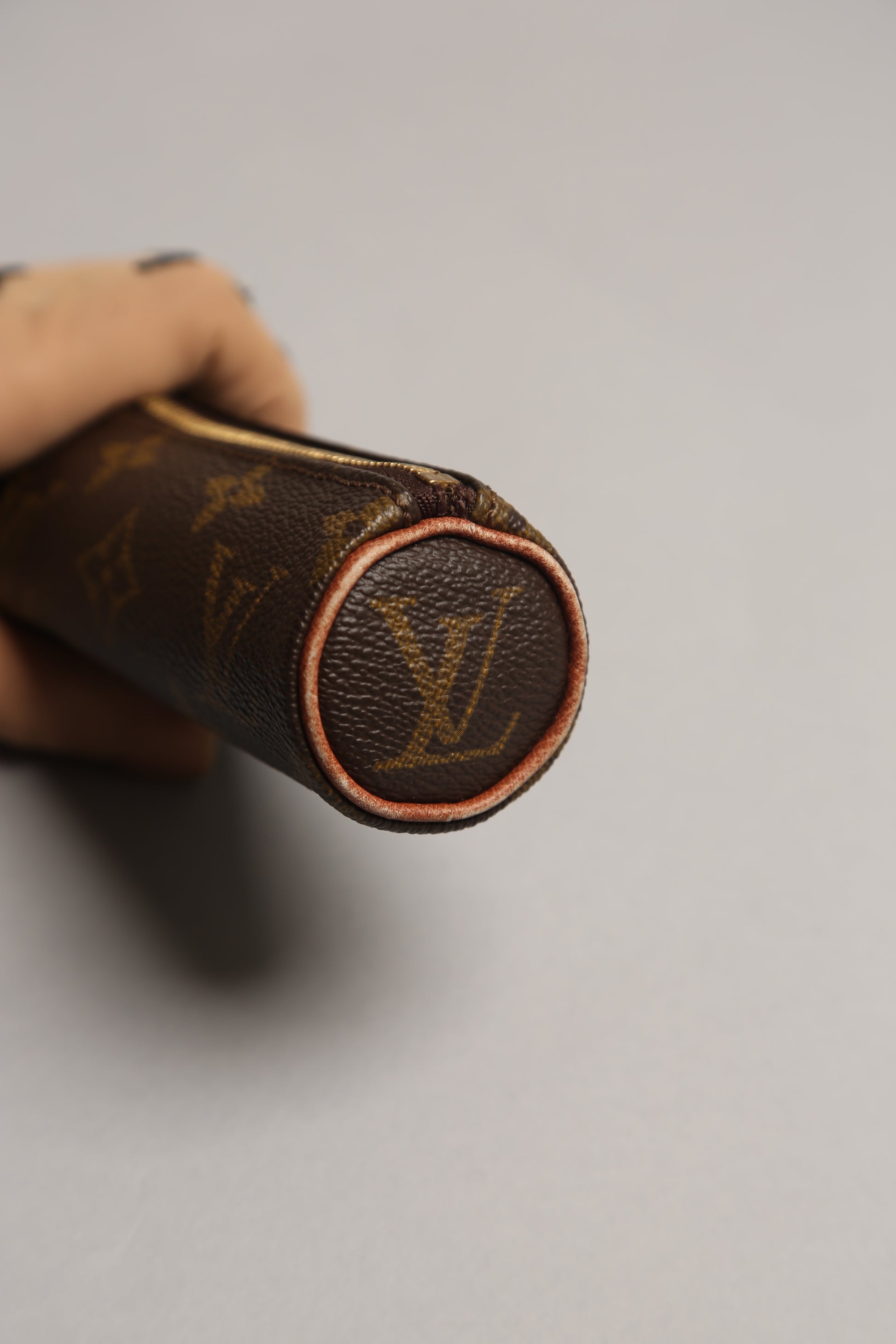 This super cute Canvas Louis Vuitton Bag is a small leather good that will make a big statement. The extra mini rare barrel bag from LV is perfect to accessorize your bigger bag with or wear on your chain or belt.