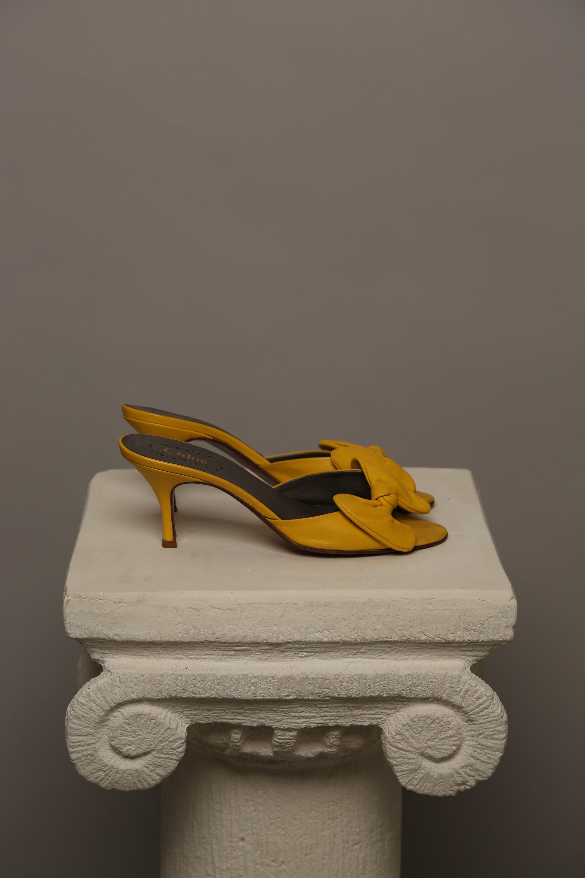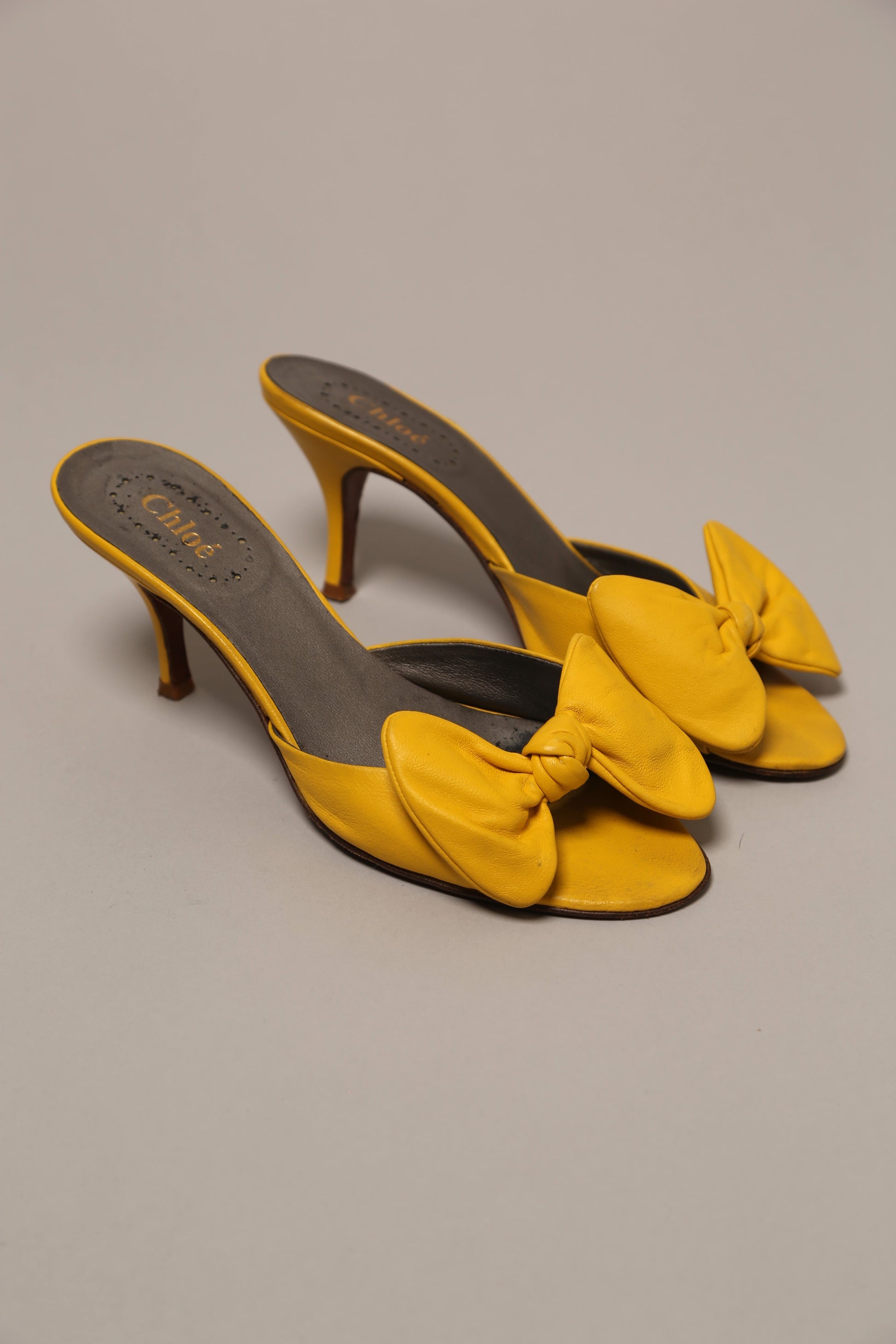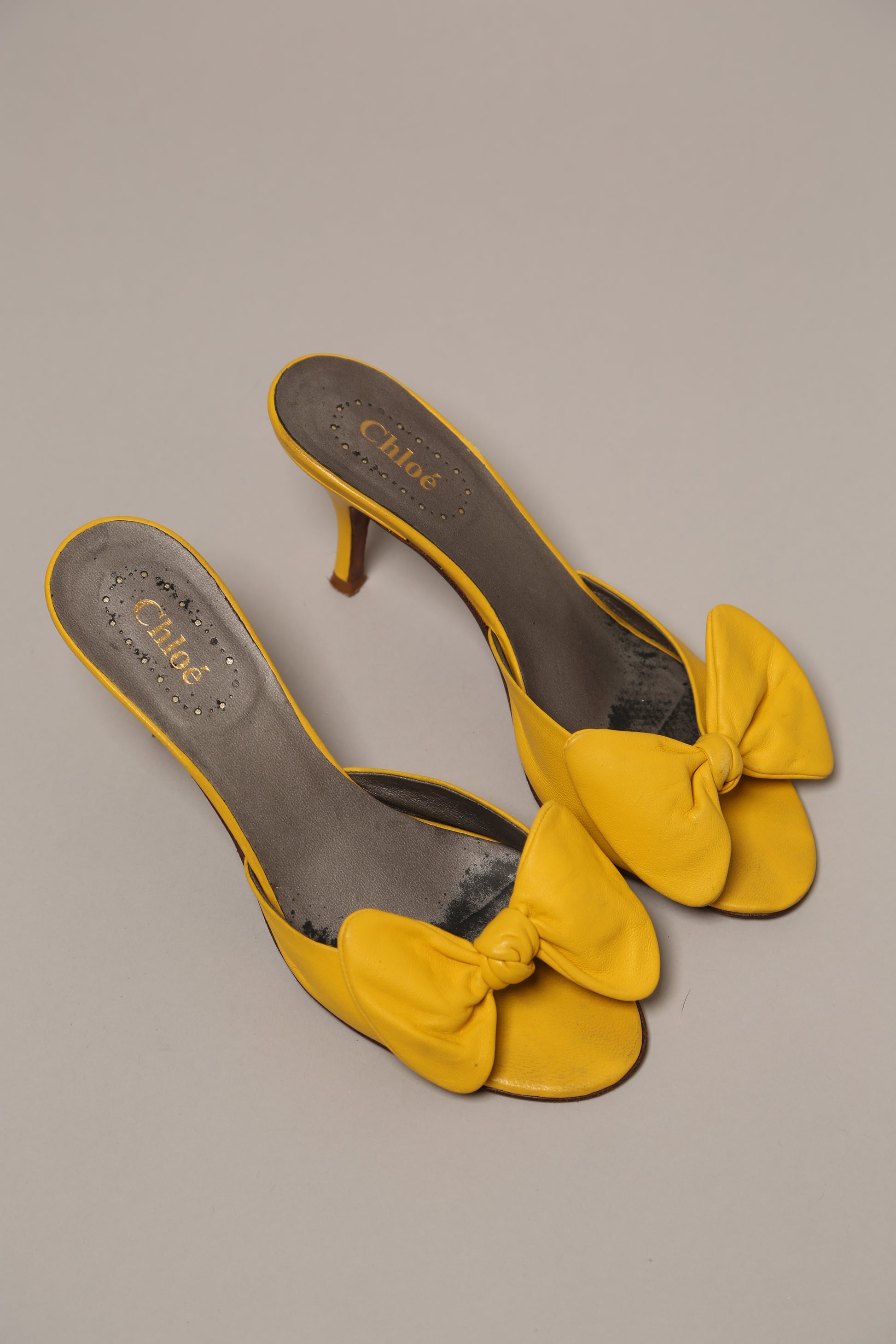 Very rare and cute sandals with a bow on top. Made with soft lambskin leather. There are normal signs of wear. Super fun yellow color: perfect for summer, adds a spicy pop of color to your outfit. We also have it in white color and new condition.