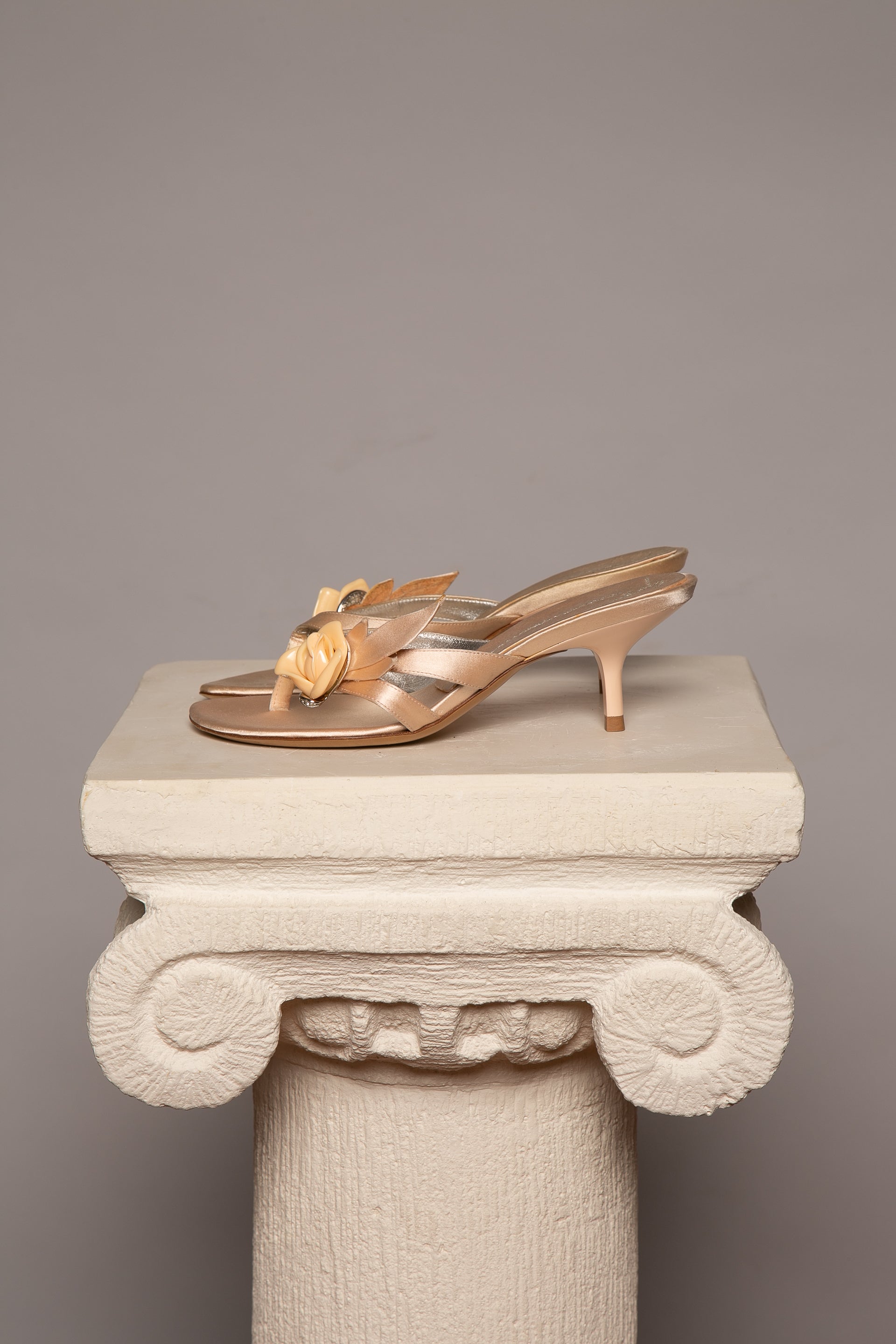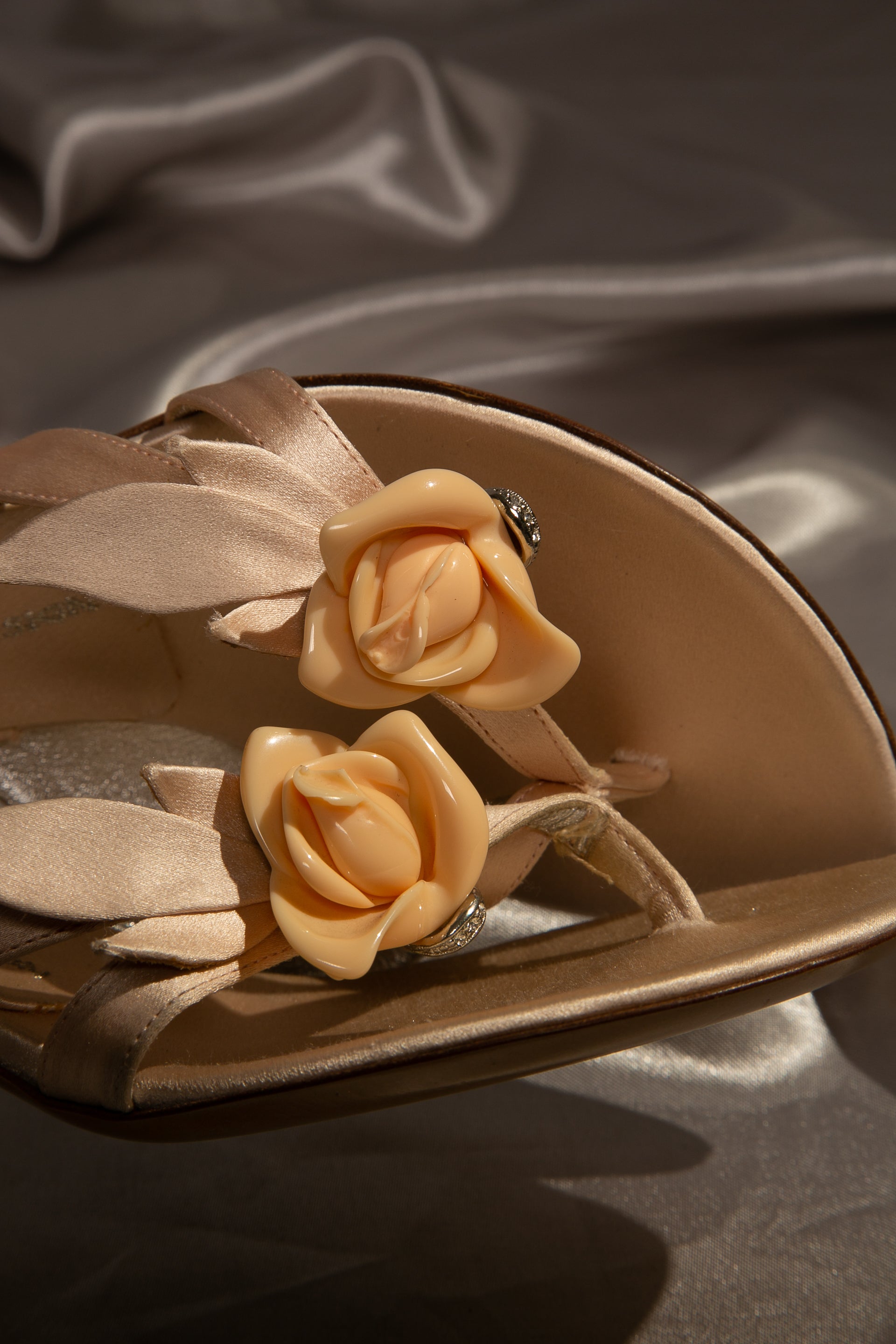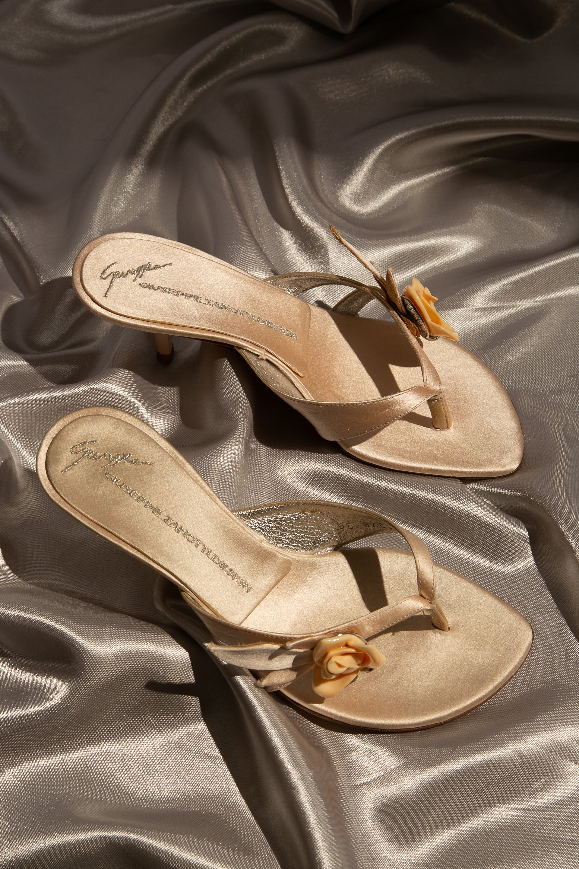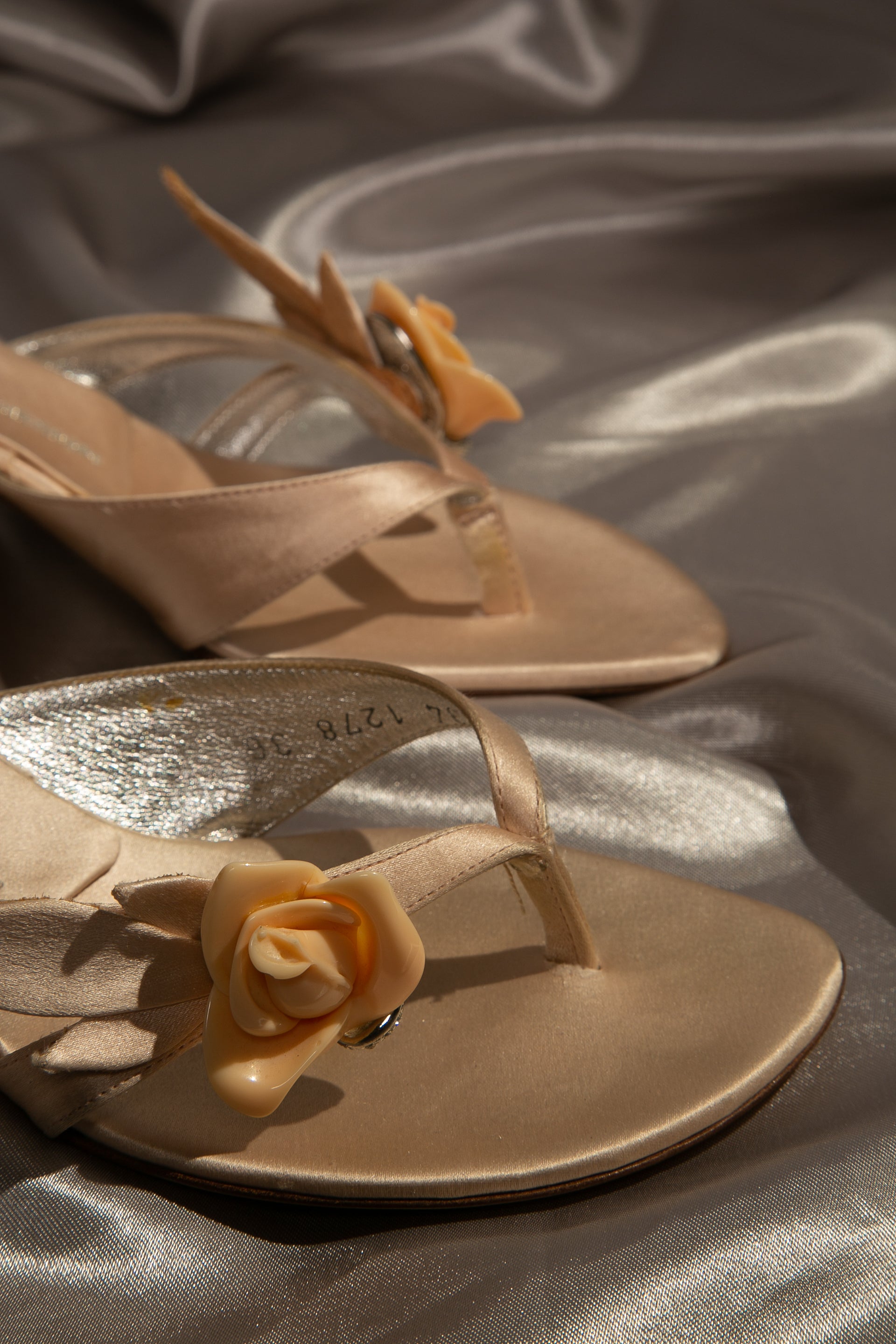 Step into a world of timeless elegance with these extremely rare exquisite Vintage Giuseppe Zanotti Pastel Pink Satin Floral Sandals. Crafted with meticulous attention to detail, these sandals showcase a one-of-a-kind rose petal design adorning the top. The delicate pastel pink hue exudes a sense of femininity and sophistication, while the rarity of this piece sets you apart as a true connoisseur of fashion. A real timeless collector's piece.