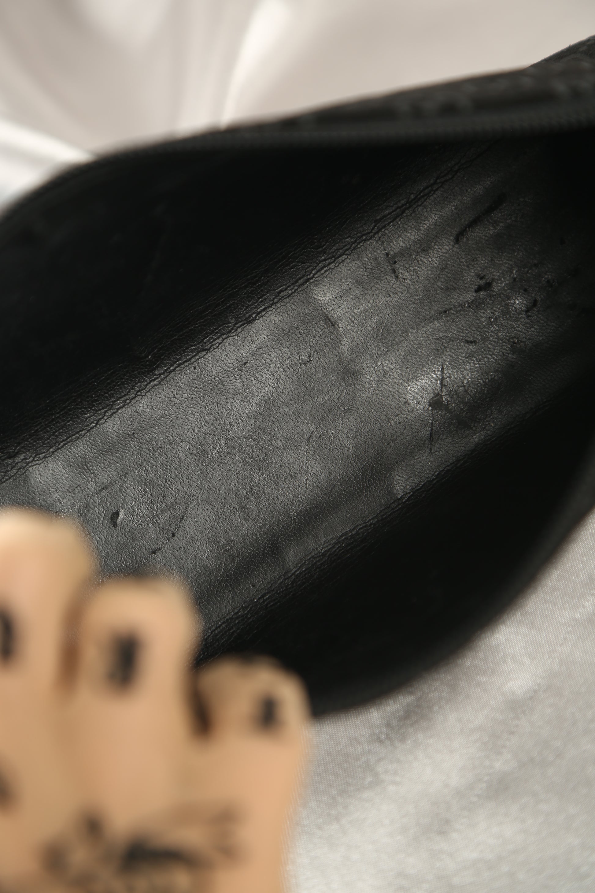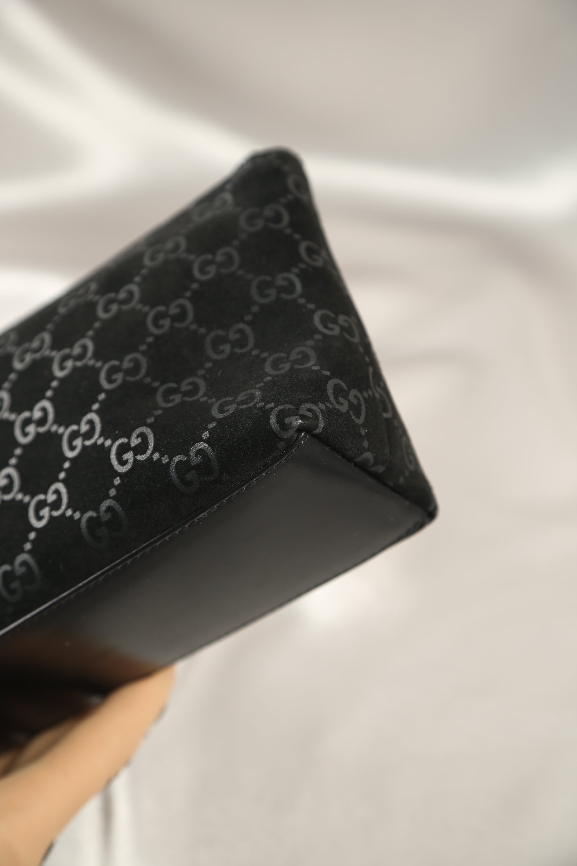 A true collector’s piece from the iconic Tom Ford era at Gucci. Crafted from super soft suede leather and featuring the classic GG monogram, this rare cosmetic bag perfectly captures the bold yet refined aesthetic of early 2000s Gucci. The gunmetal hardware adds a sleek, modern edge. Versatile and chic — use it as a clutch for a minimalist statement look or as a makeup/organizer bag inside your larger tote.