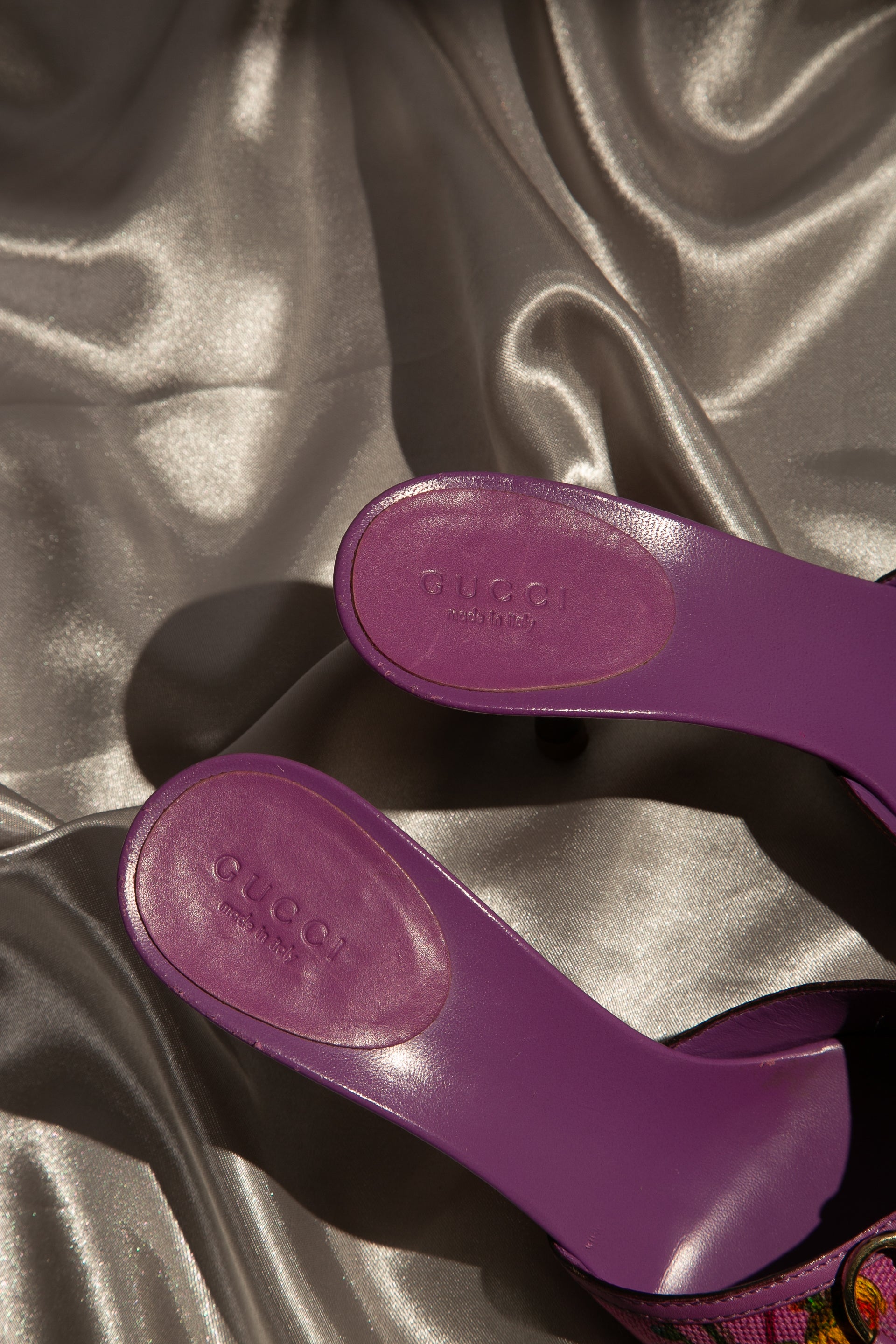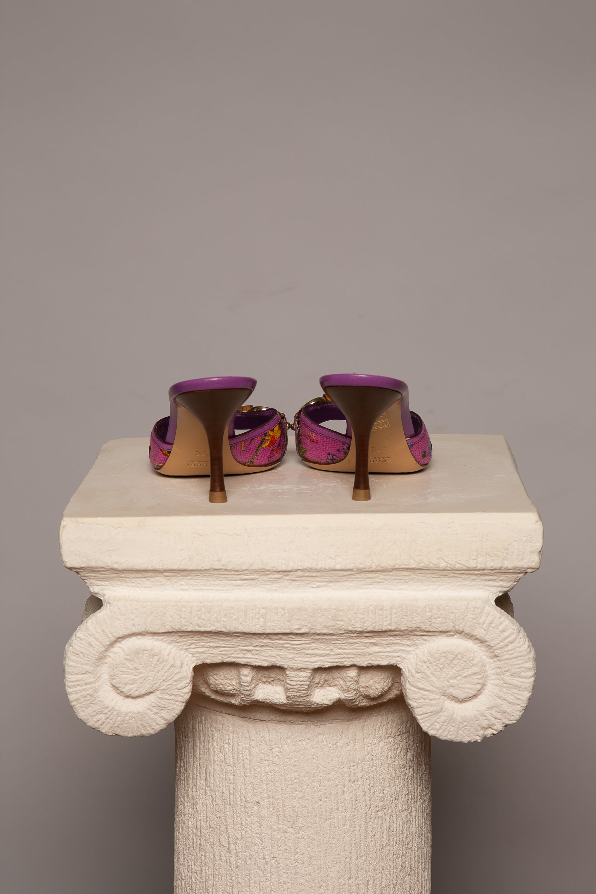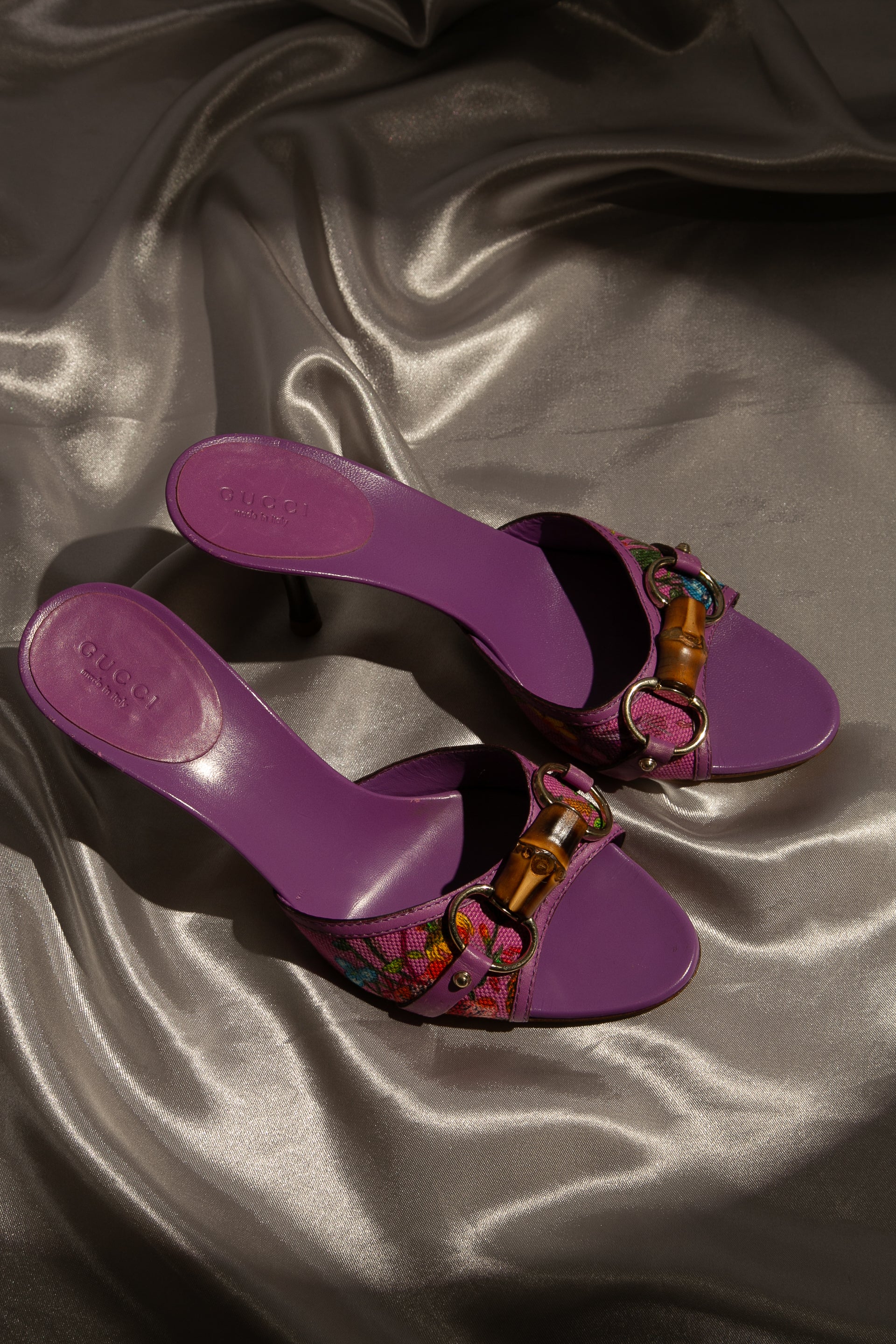 Rare Gucci Bamboo Horsebit Mules. Floral design Canvas and leather made.