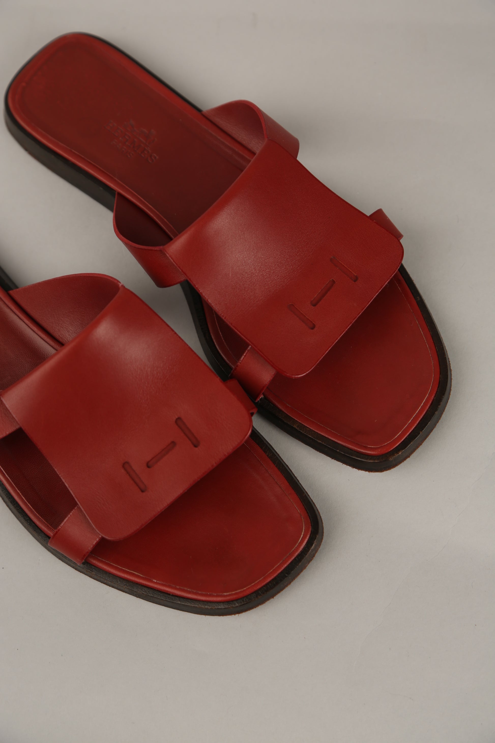 These rare Hermès slides are crafted from high-quality, smooth leather in a stunning deep burgundy—a rich, elevated color that pairs effortlessly with neutrals, denim, or summer whites. The design is clean, featuring Hermès’ signature H cutout for a subtle yet iconic touch. Unisex, modern, and incredibly easy to style—perfect for anyone who loves minimal luxury.