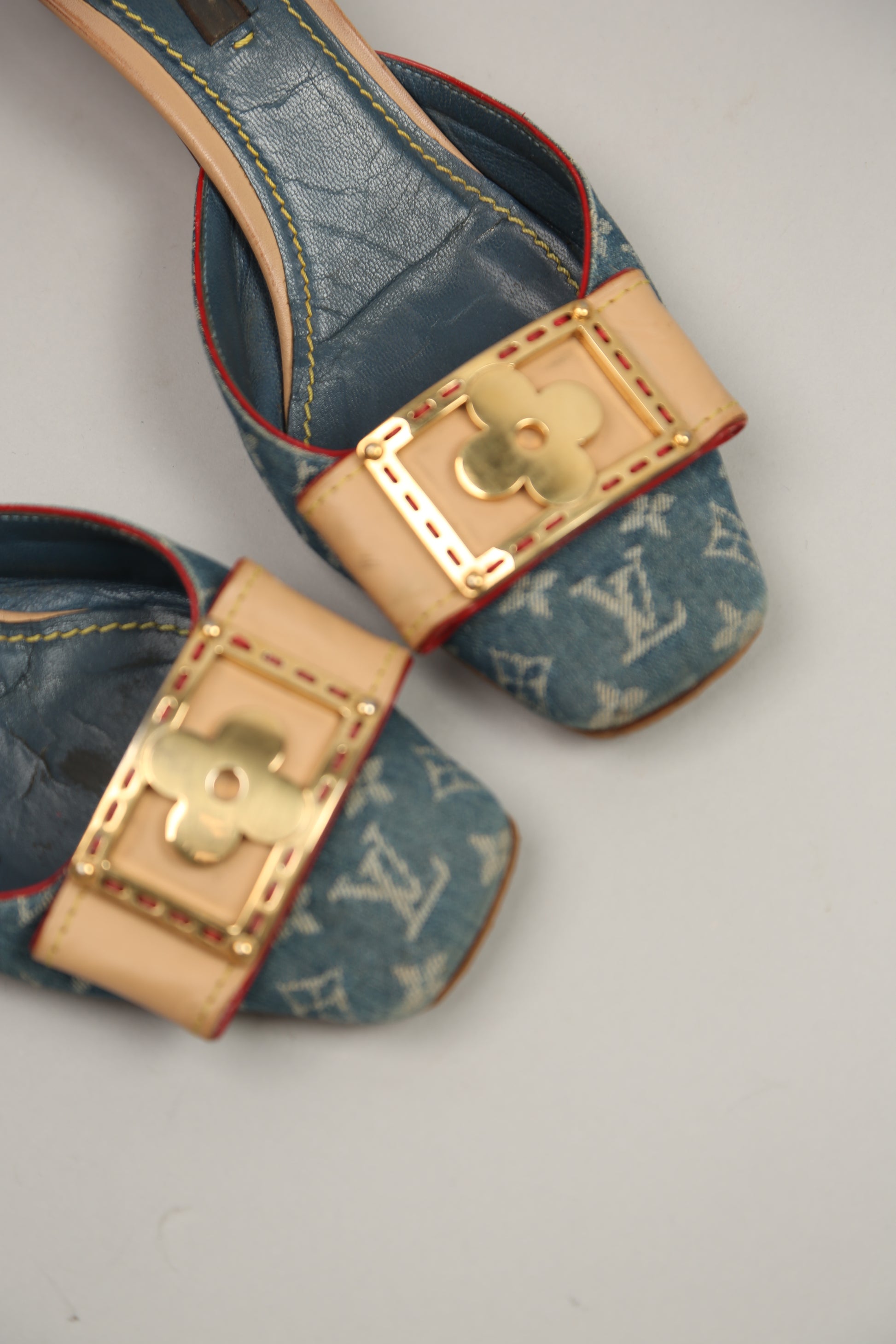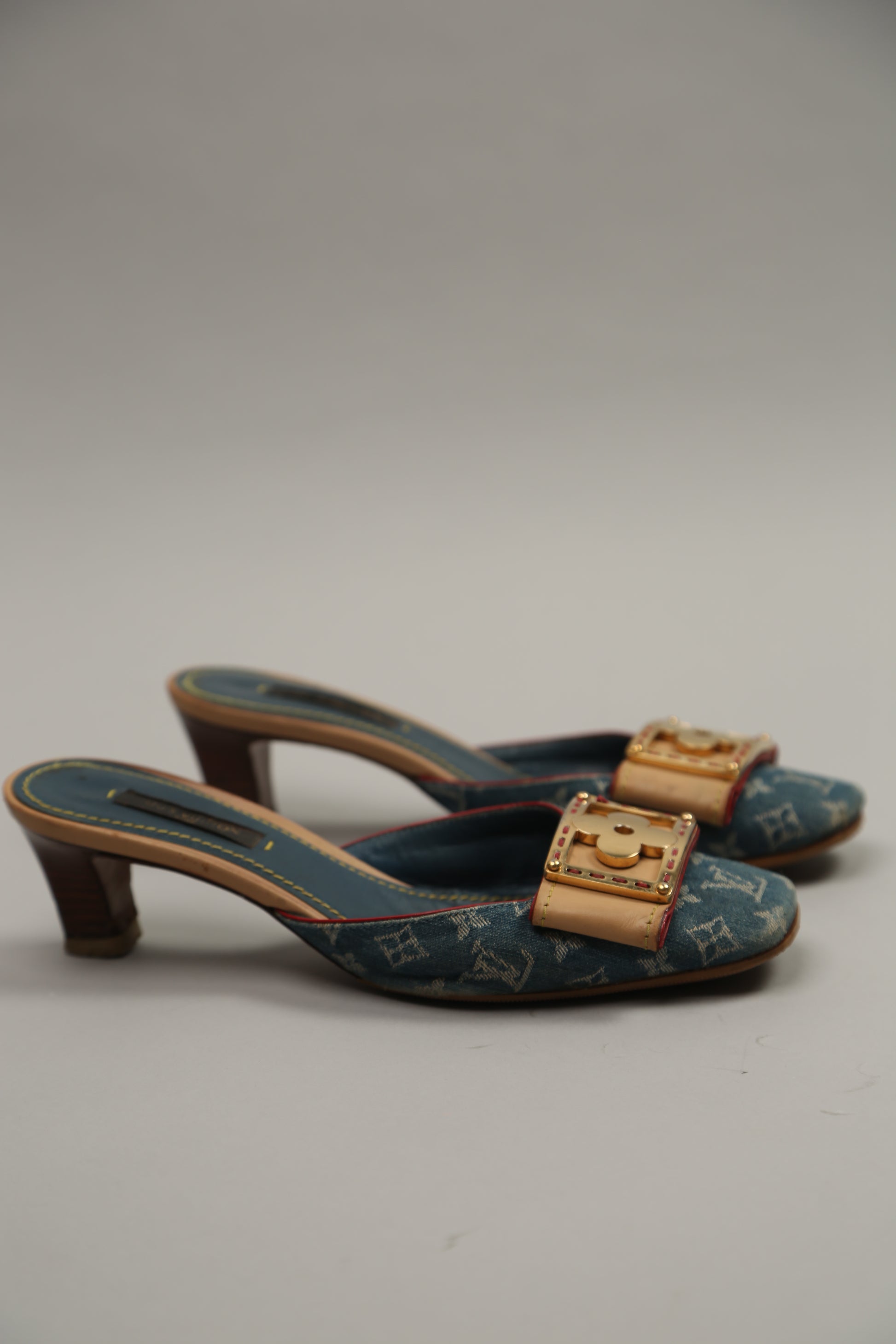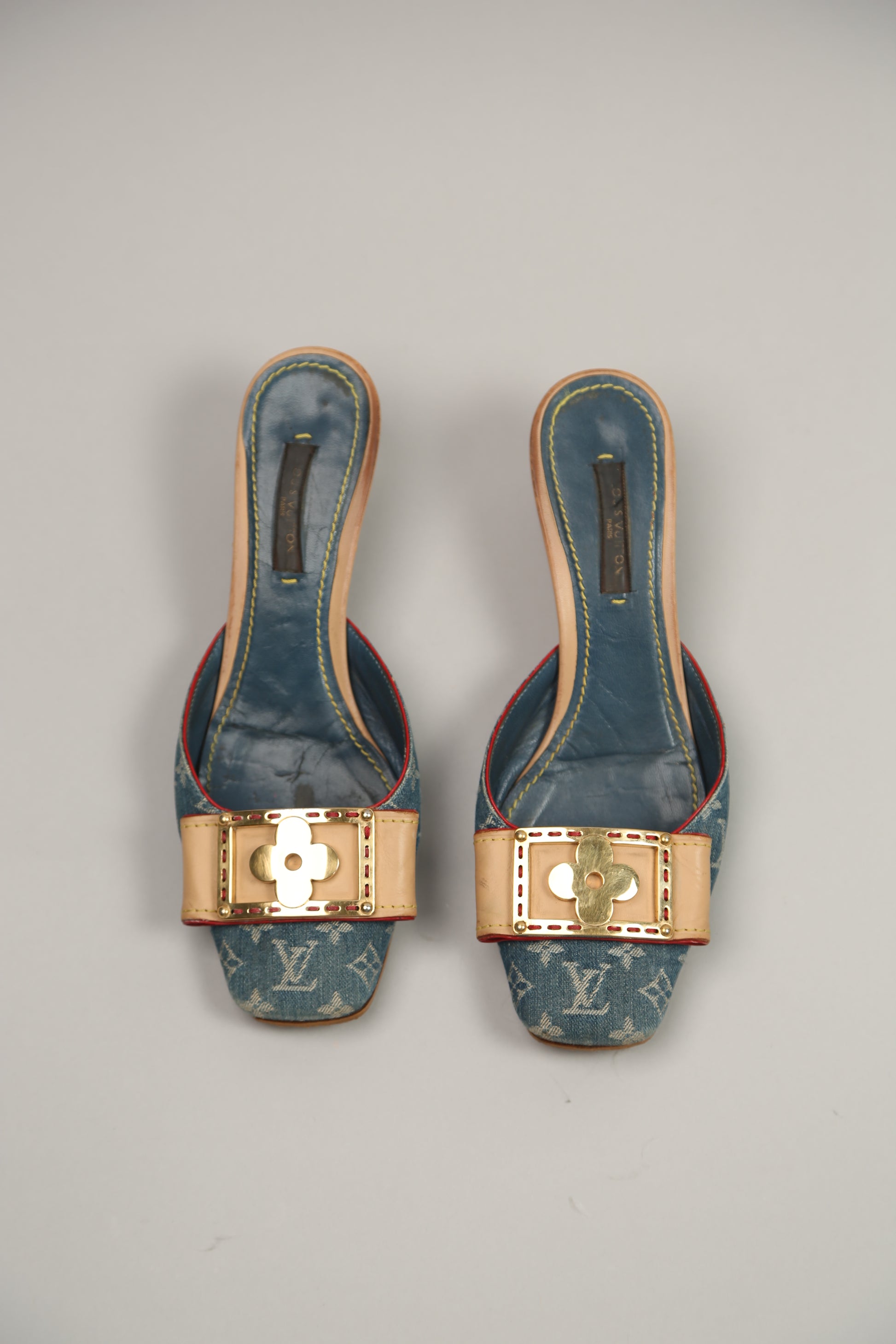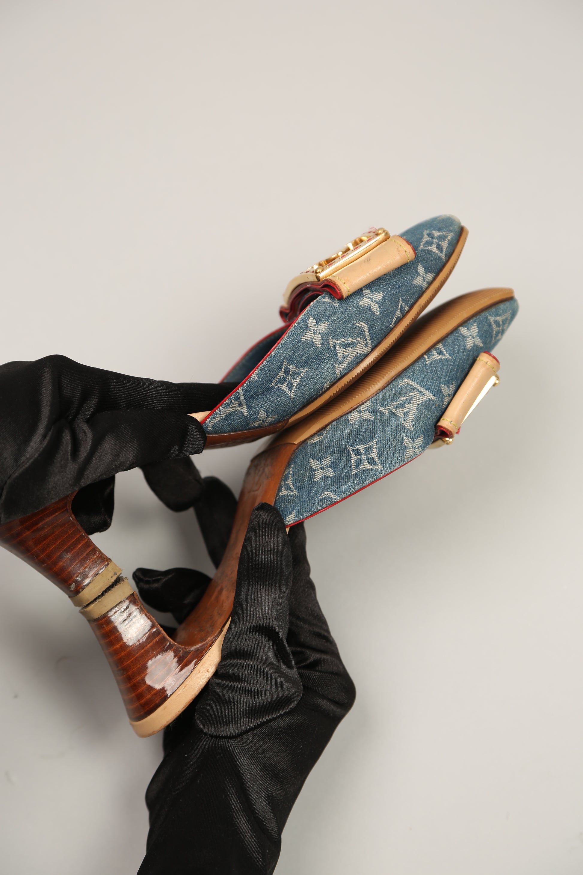 Y2K Louis Vuitton Denim Kitten Heel Mules