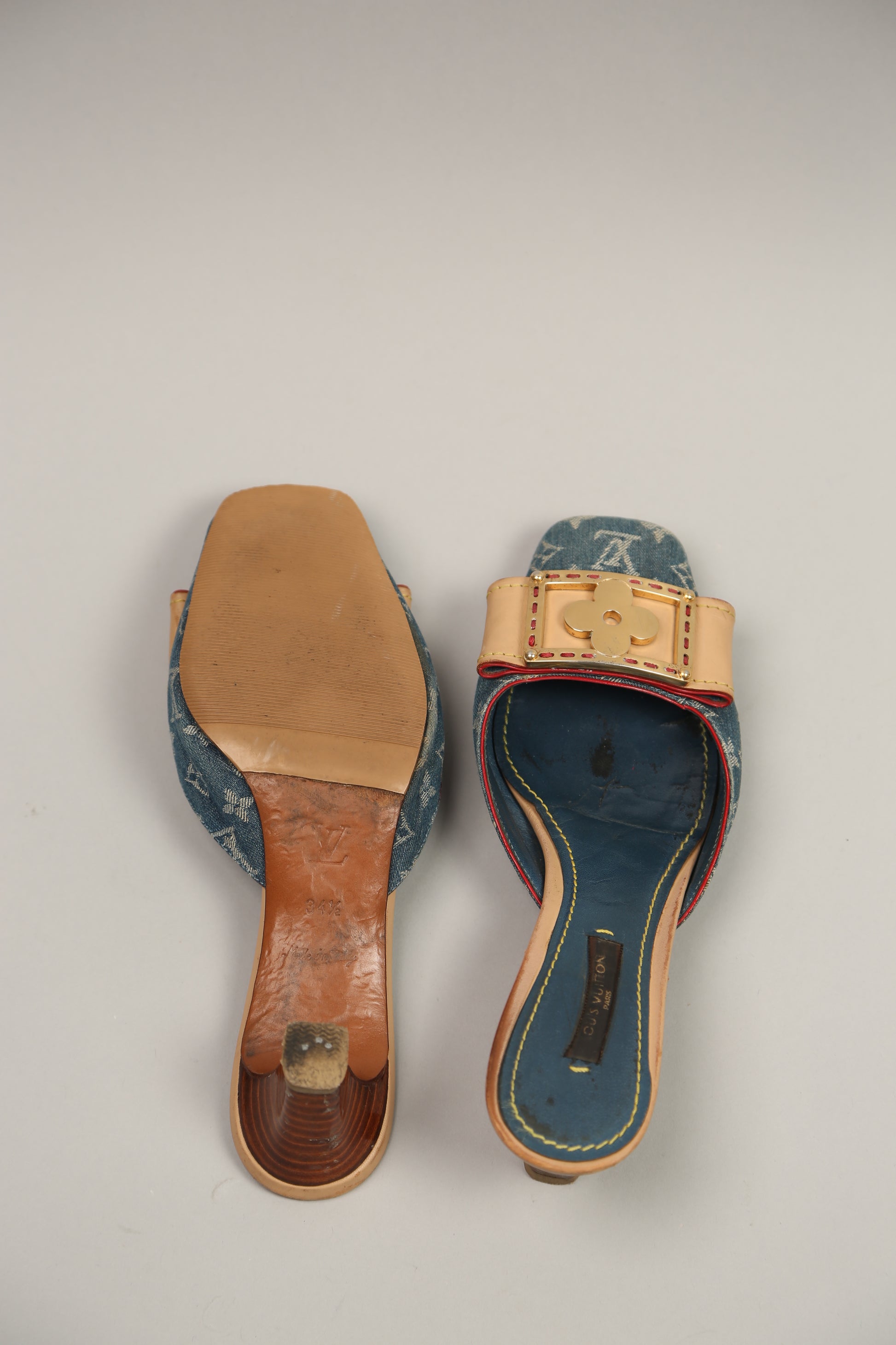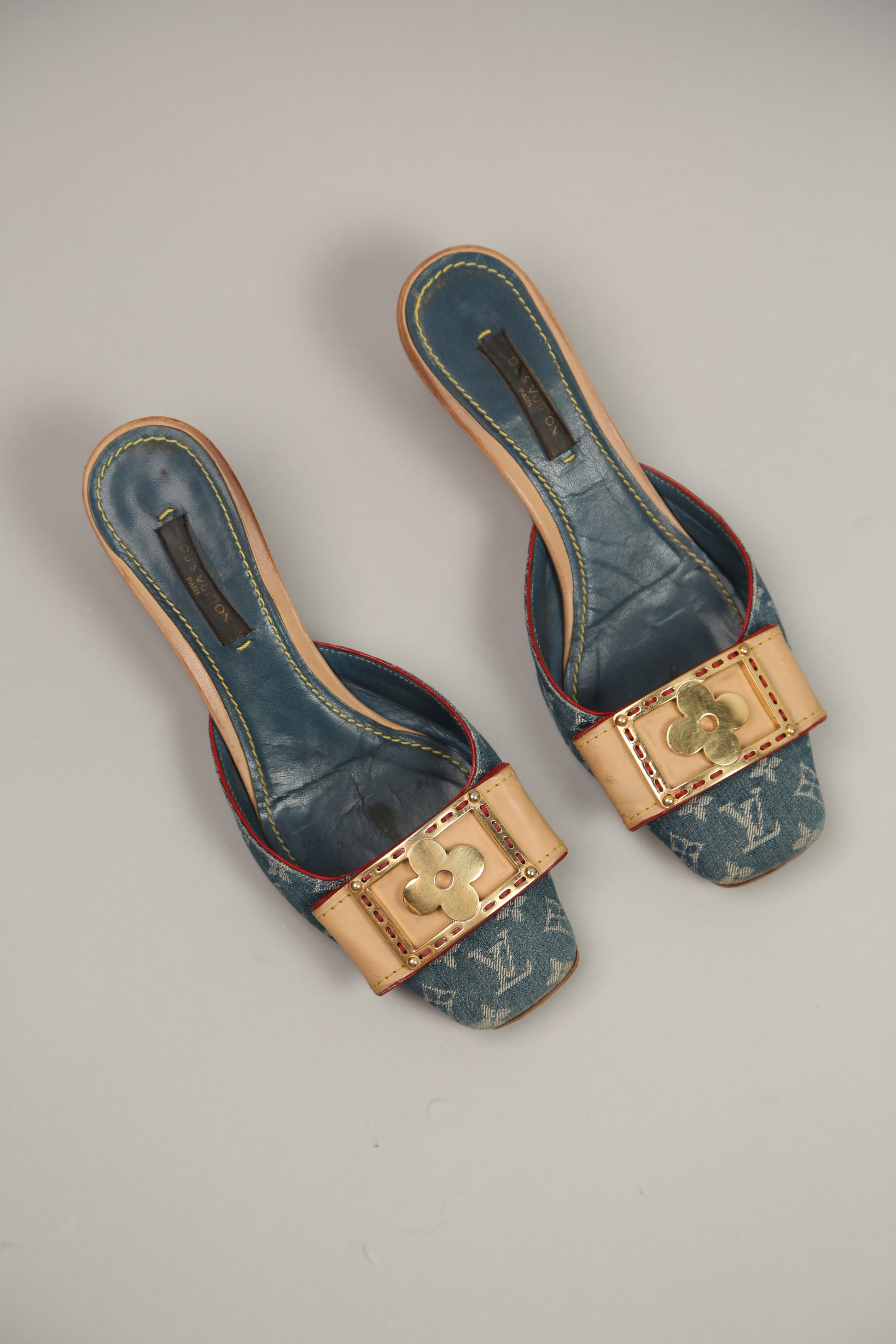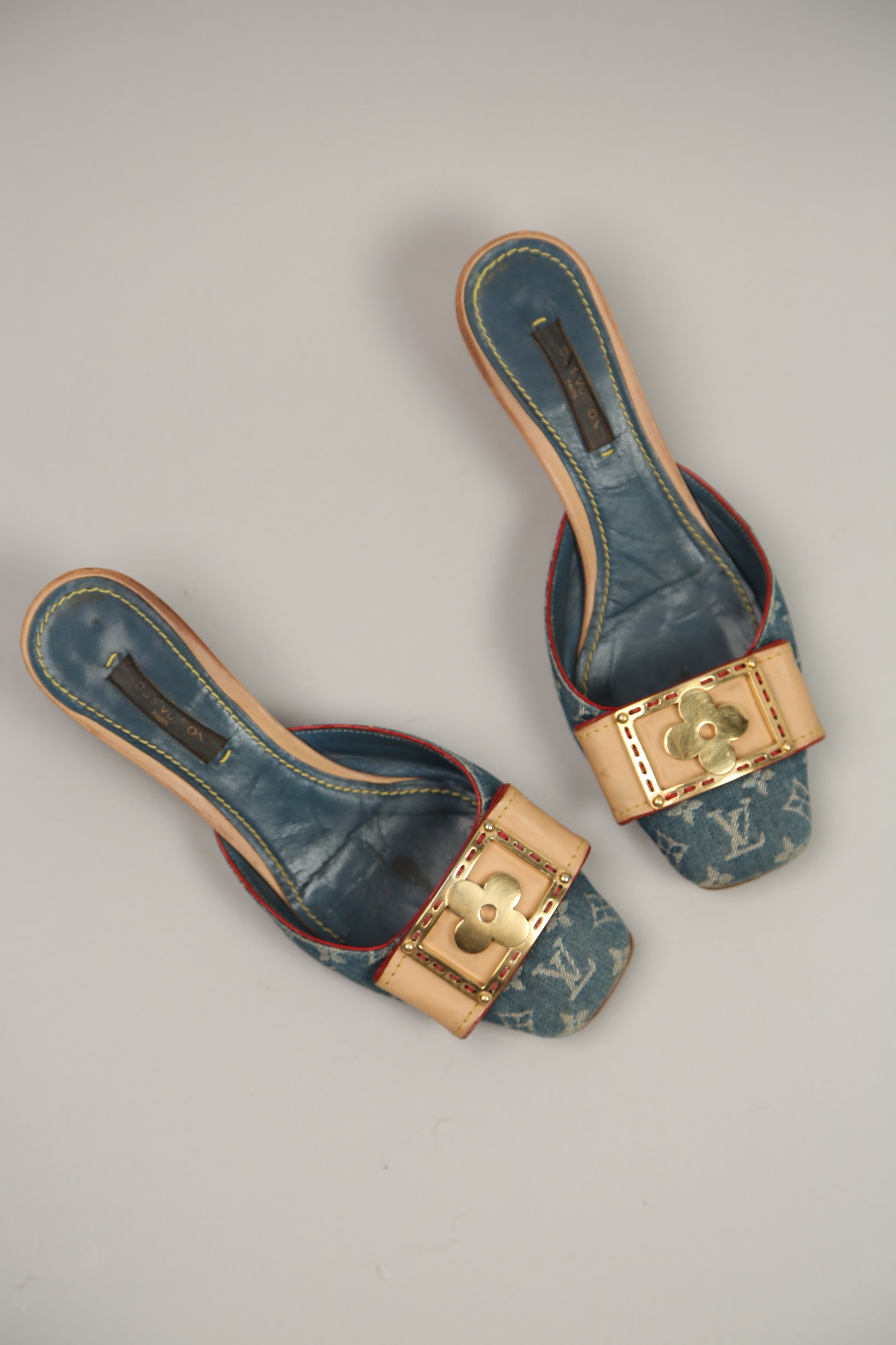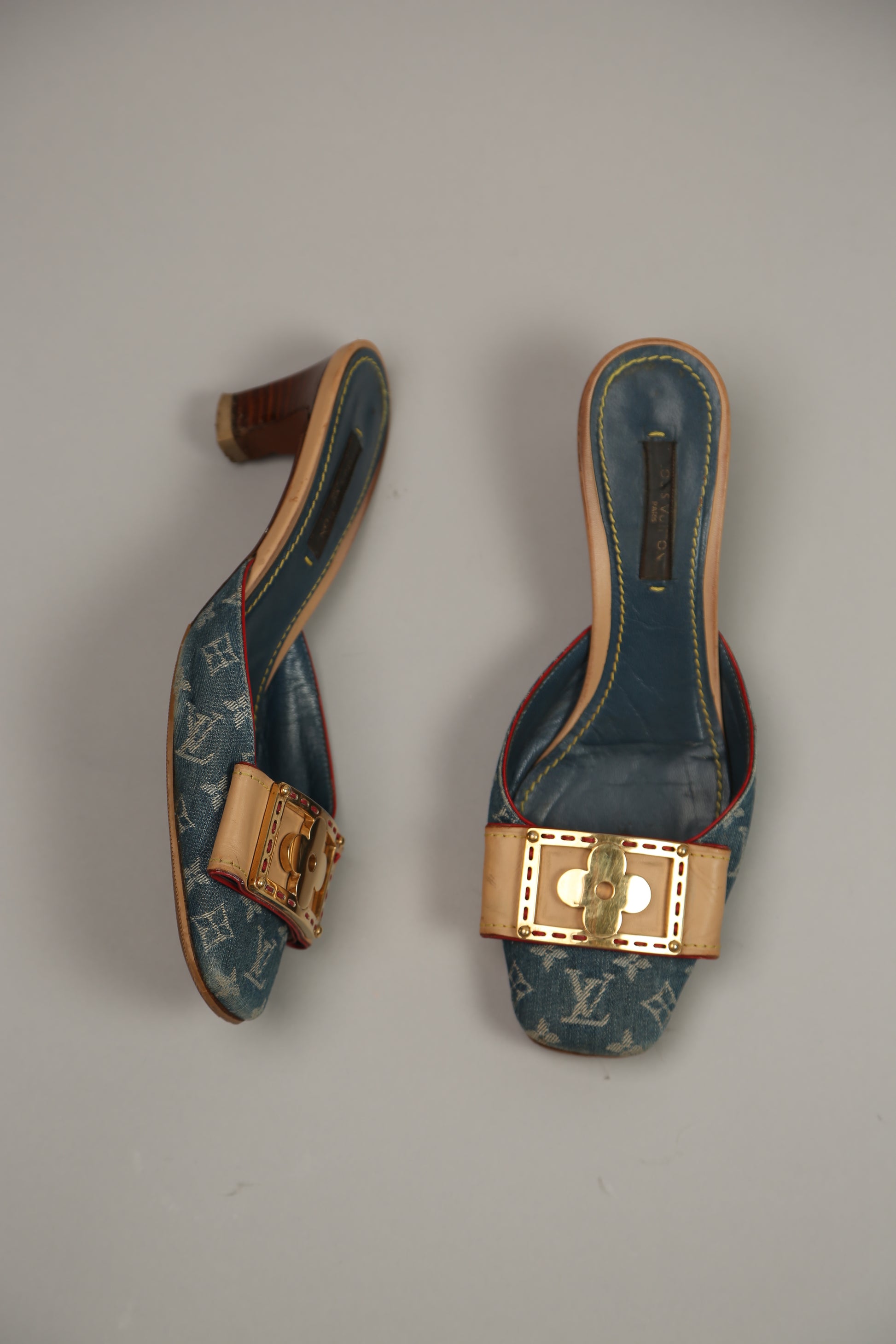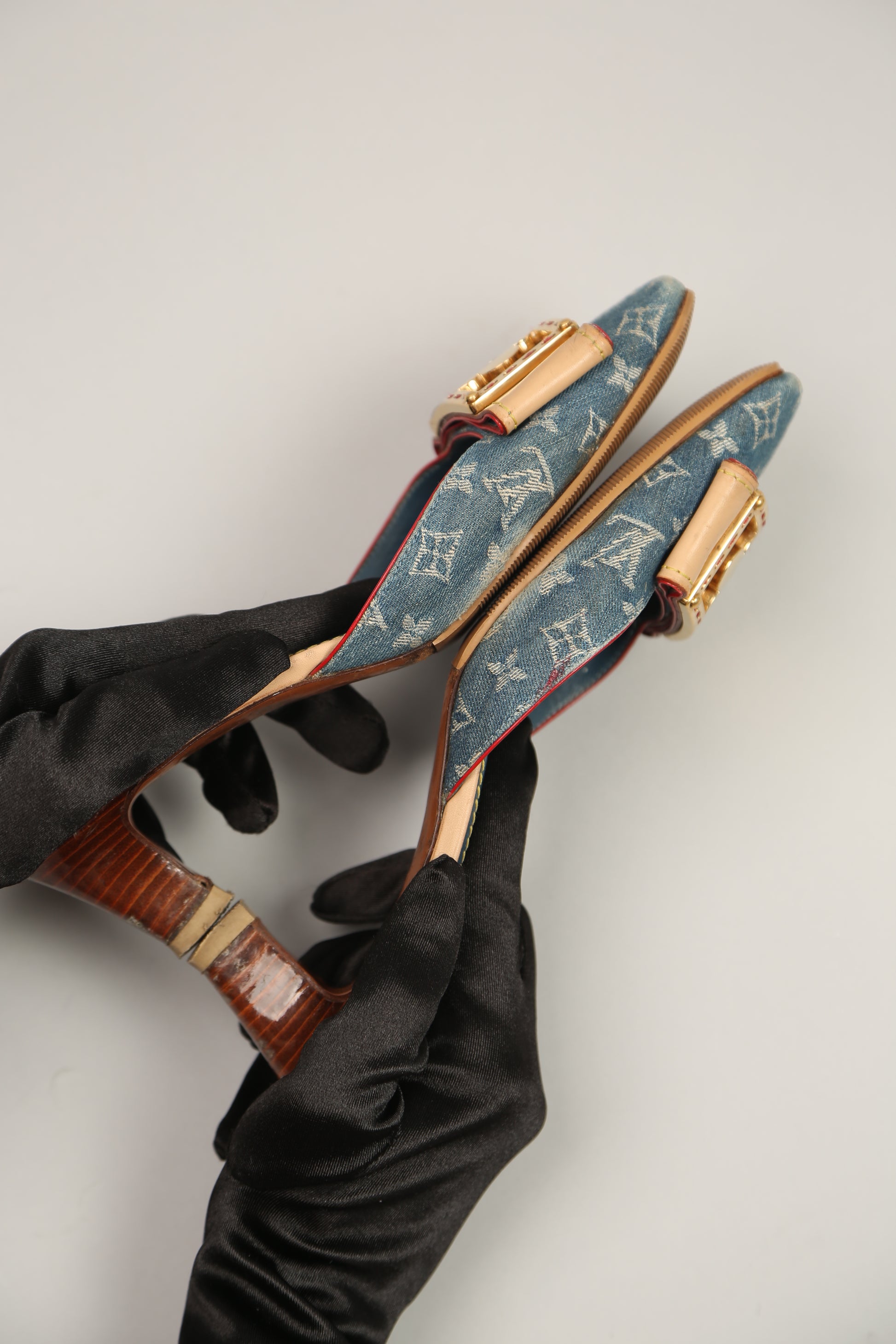 Y2K Louis Vuitton Denim Kitten Heel Mules