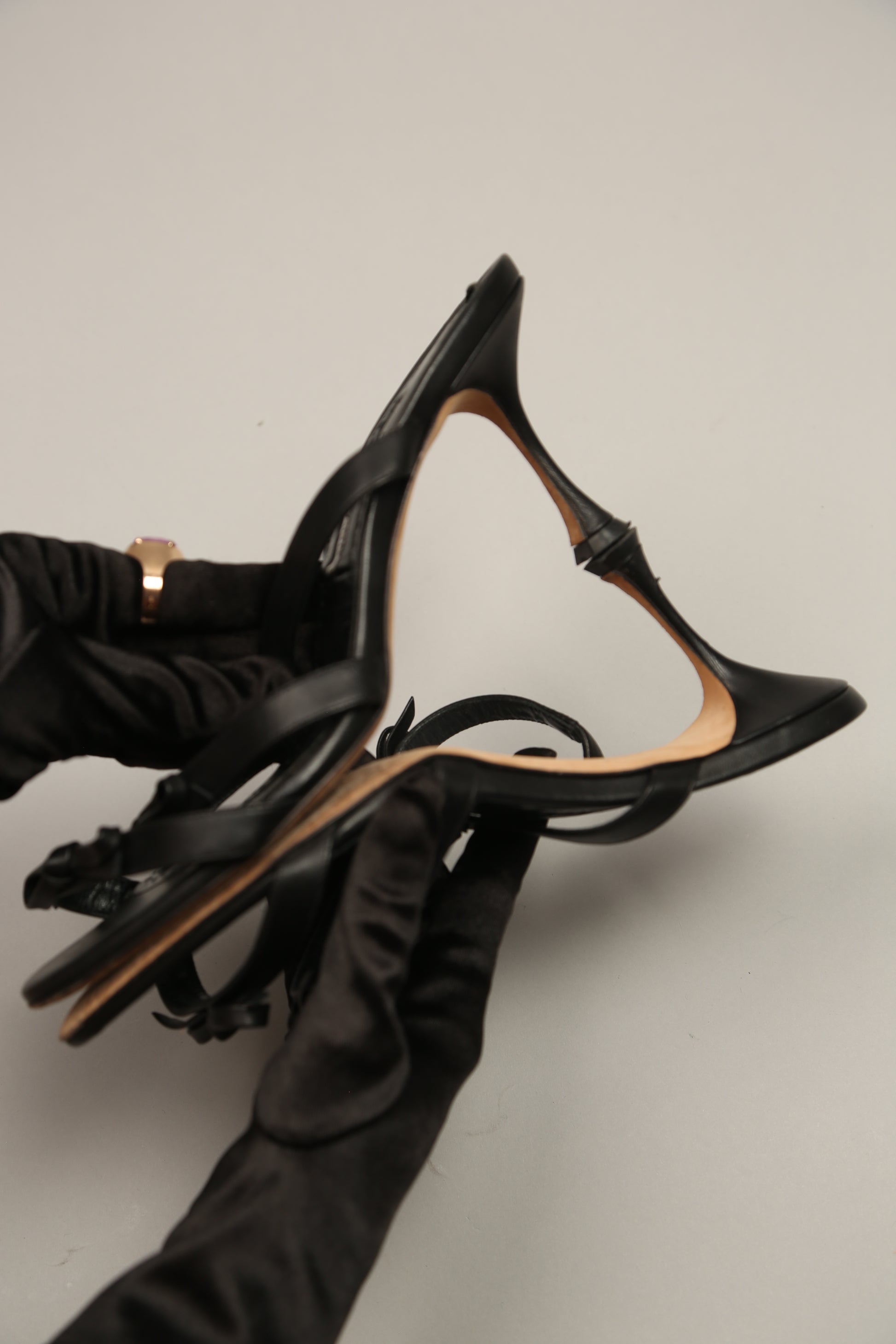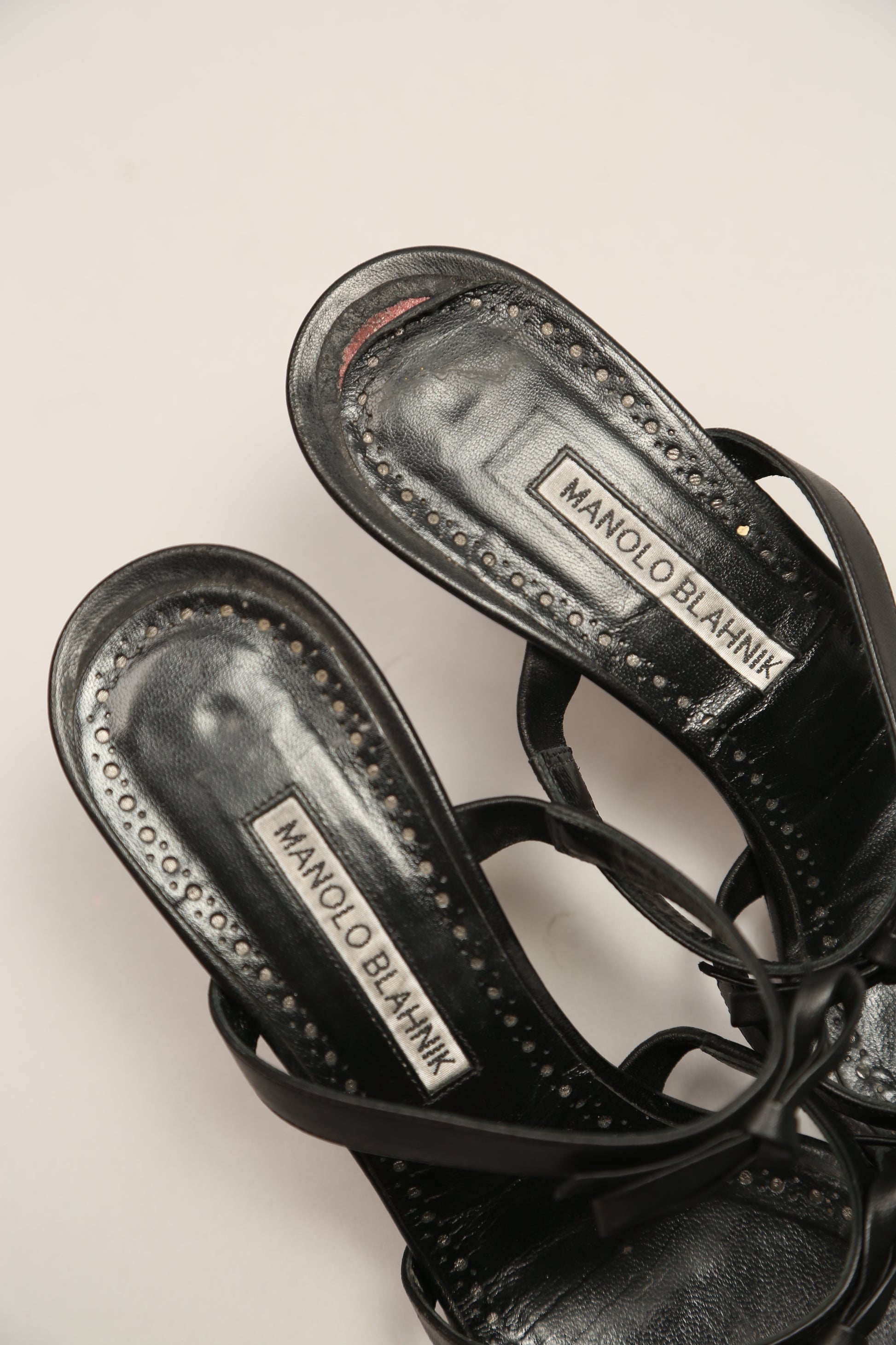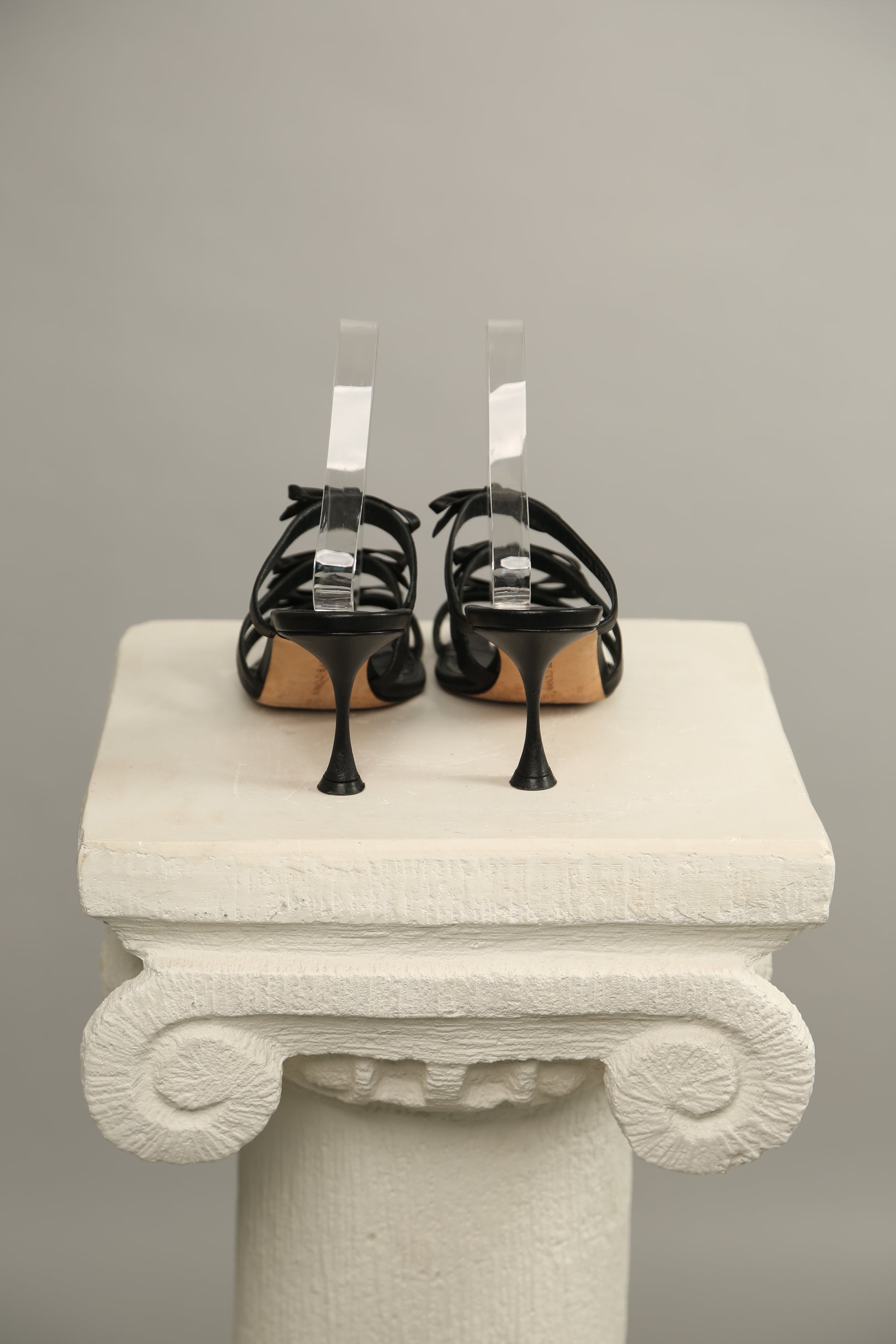 Elegant and timeless, these black leather Manolo Blahnik heels feature three delicate bow details for a feminine touch. Handcrafted in Italy with the signature Manolo quality. A classic silhouette that effortlessly transitions from day to night. Normal signs of wear on the heels and on the insole.