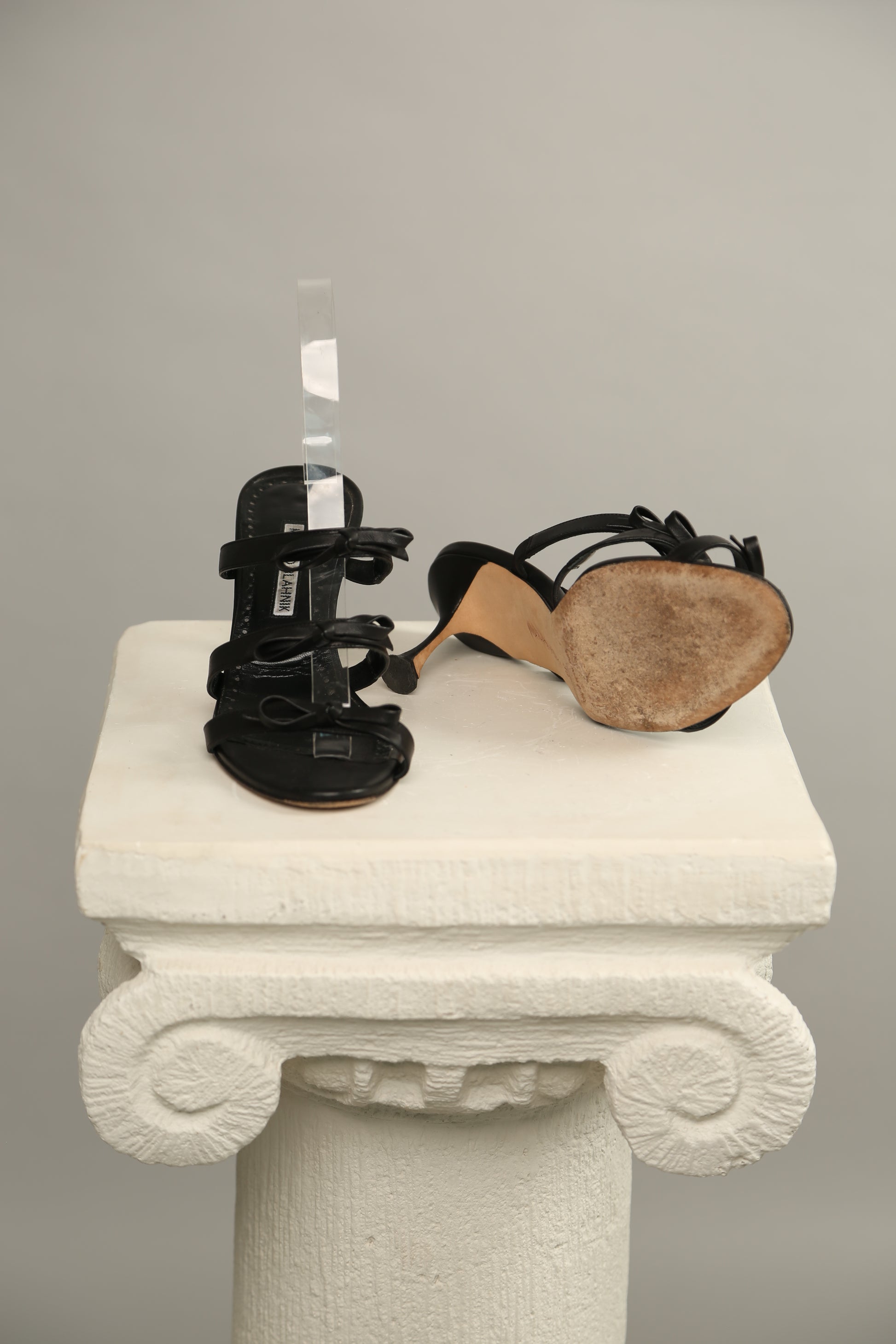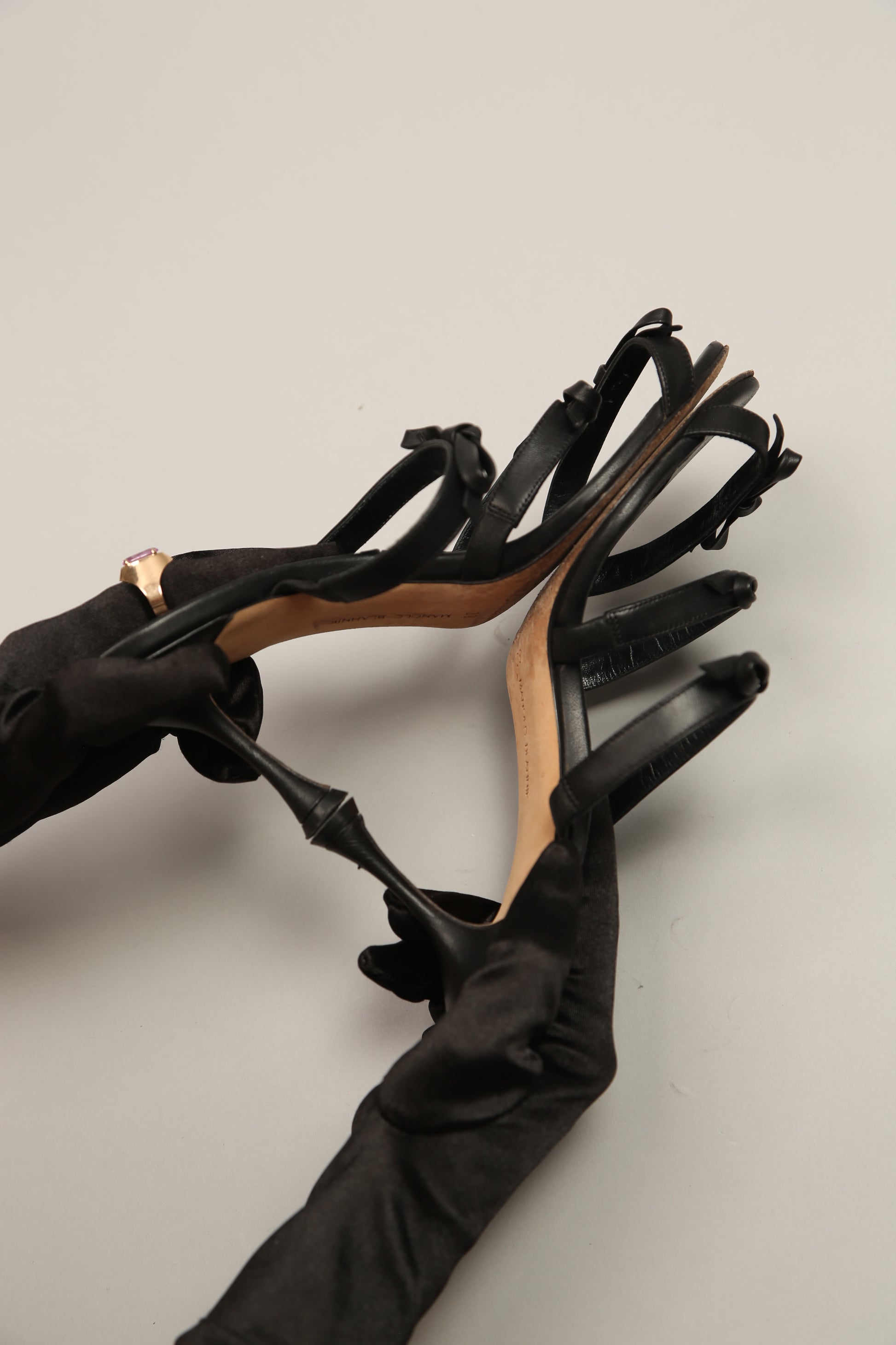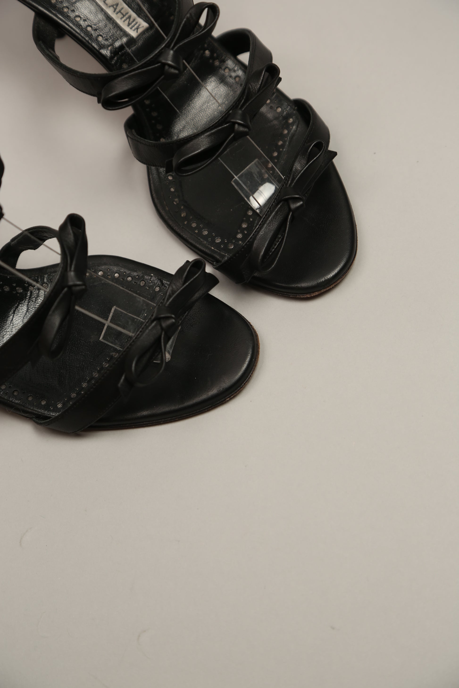 Vintage Manolo Blahnik Black Leather Heels with Bows