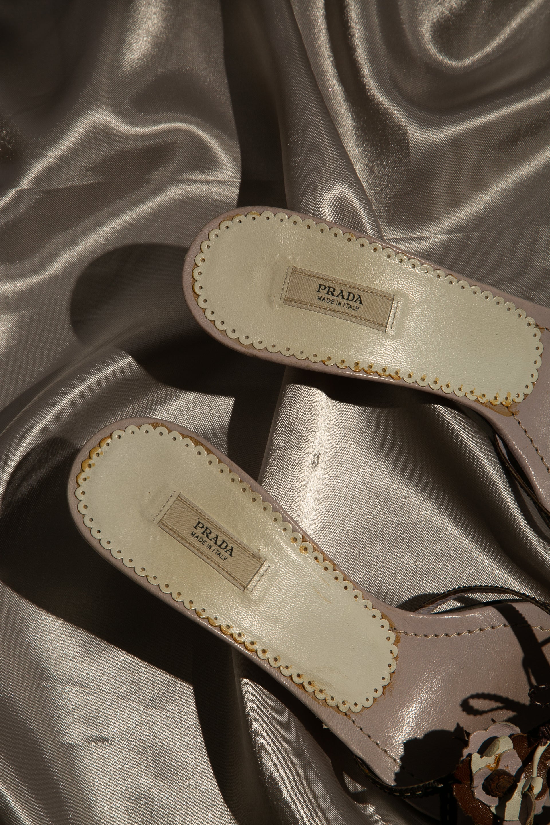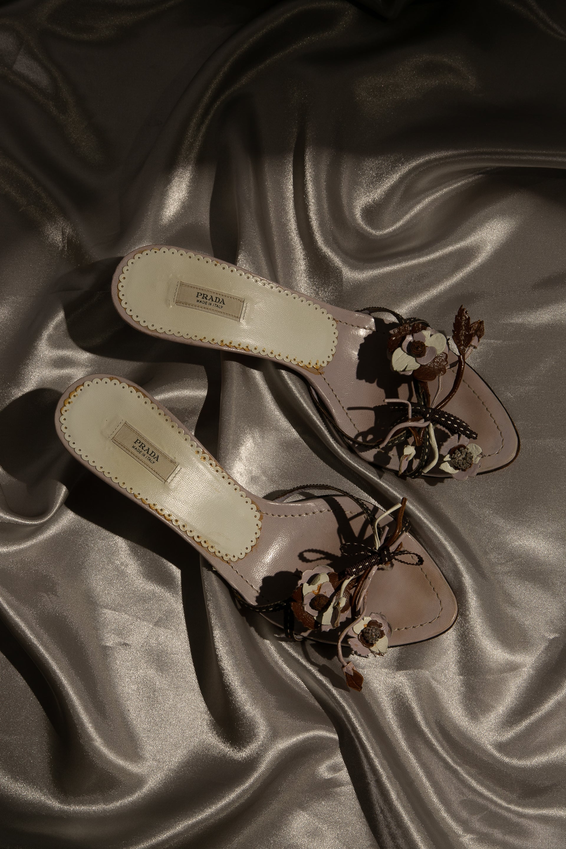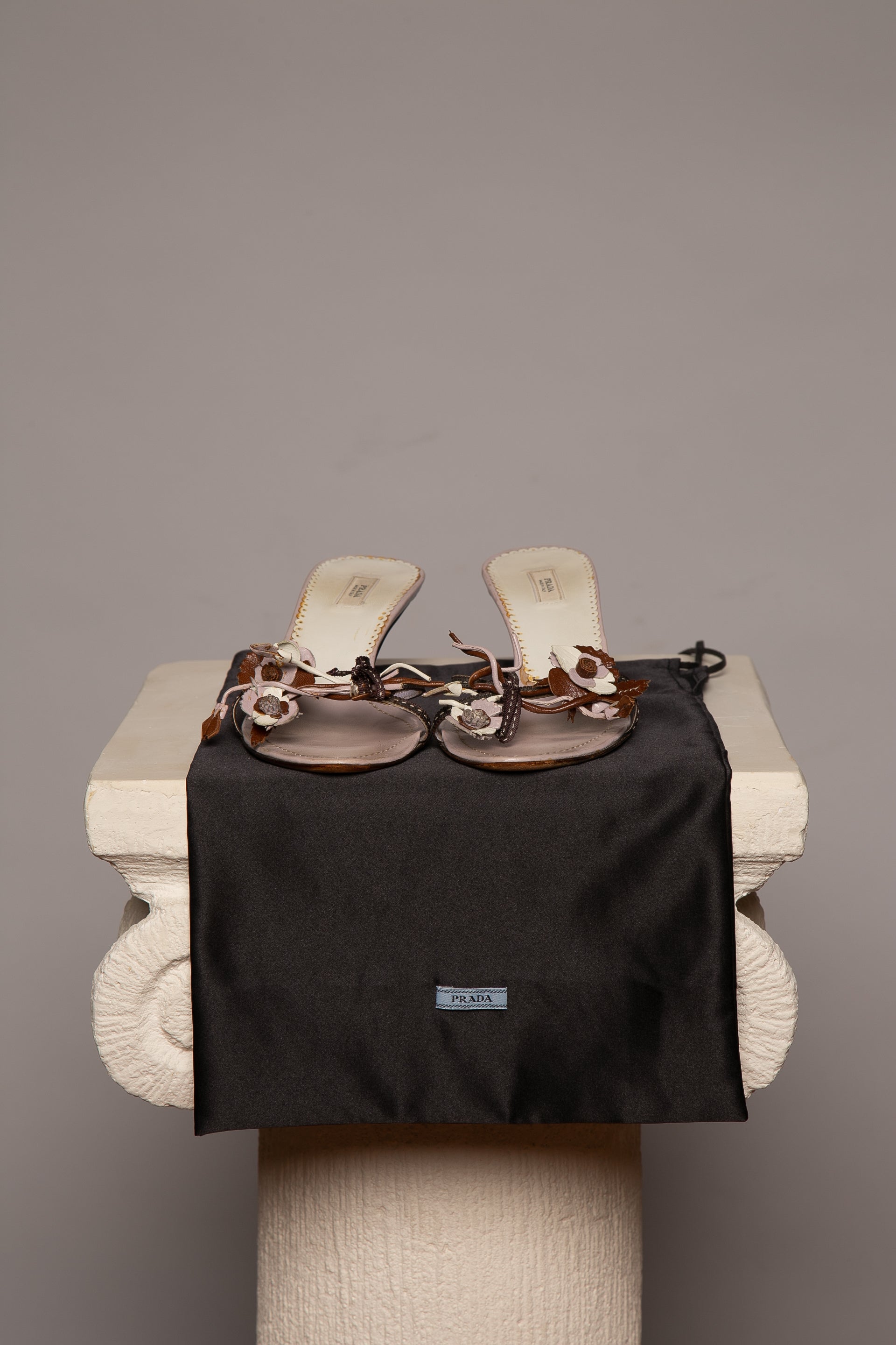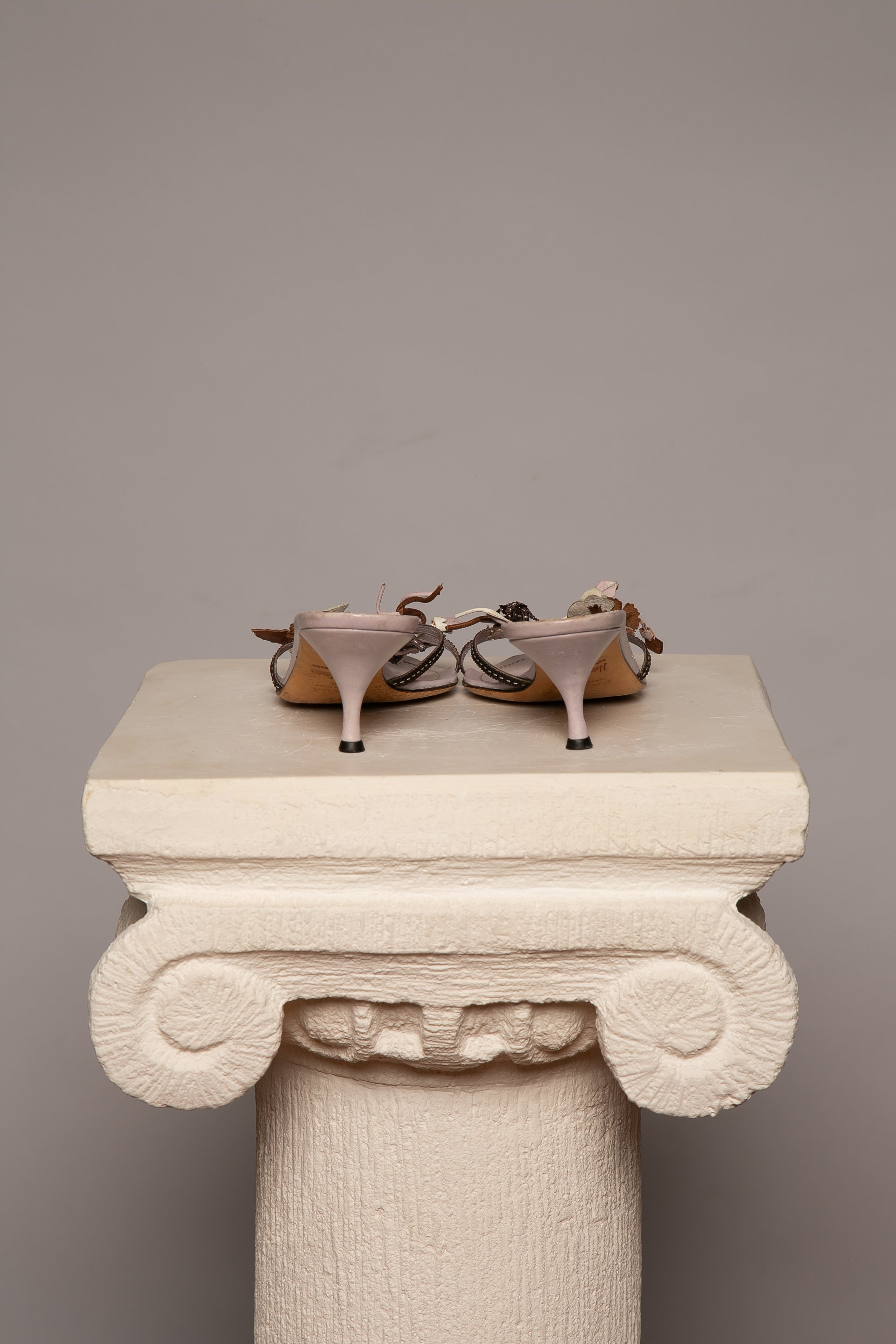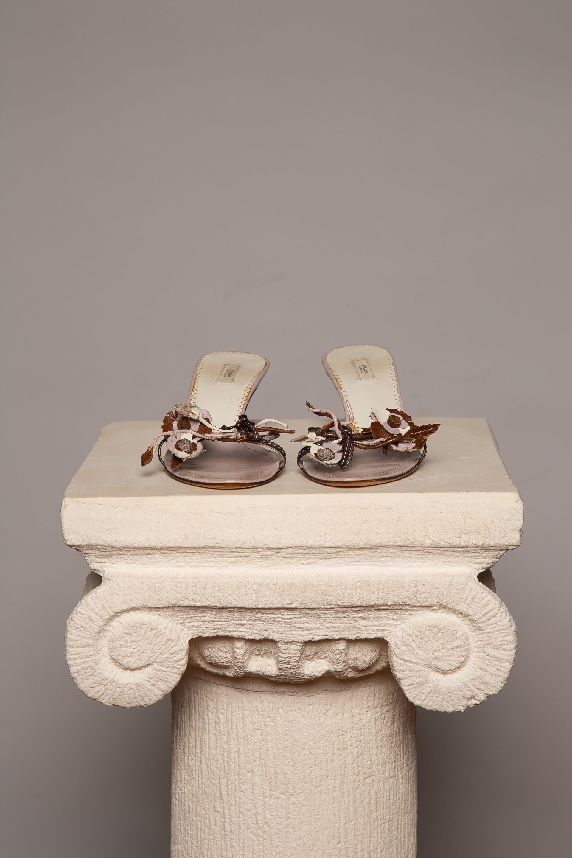 Prada & Neiman Marcus Collaboration for their 95th Anniversary. Cute Lilac colored leather with floral design and bow in the toe area.