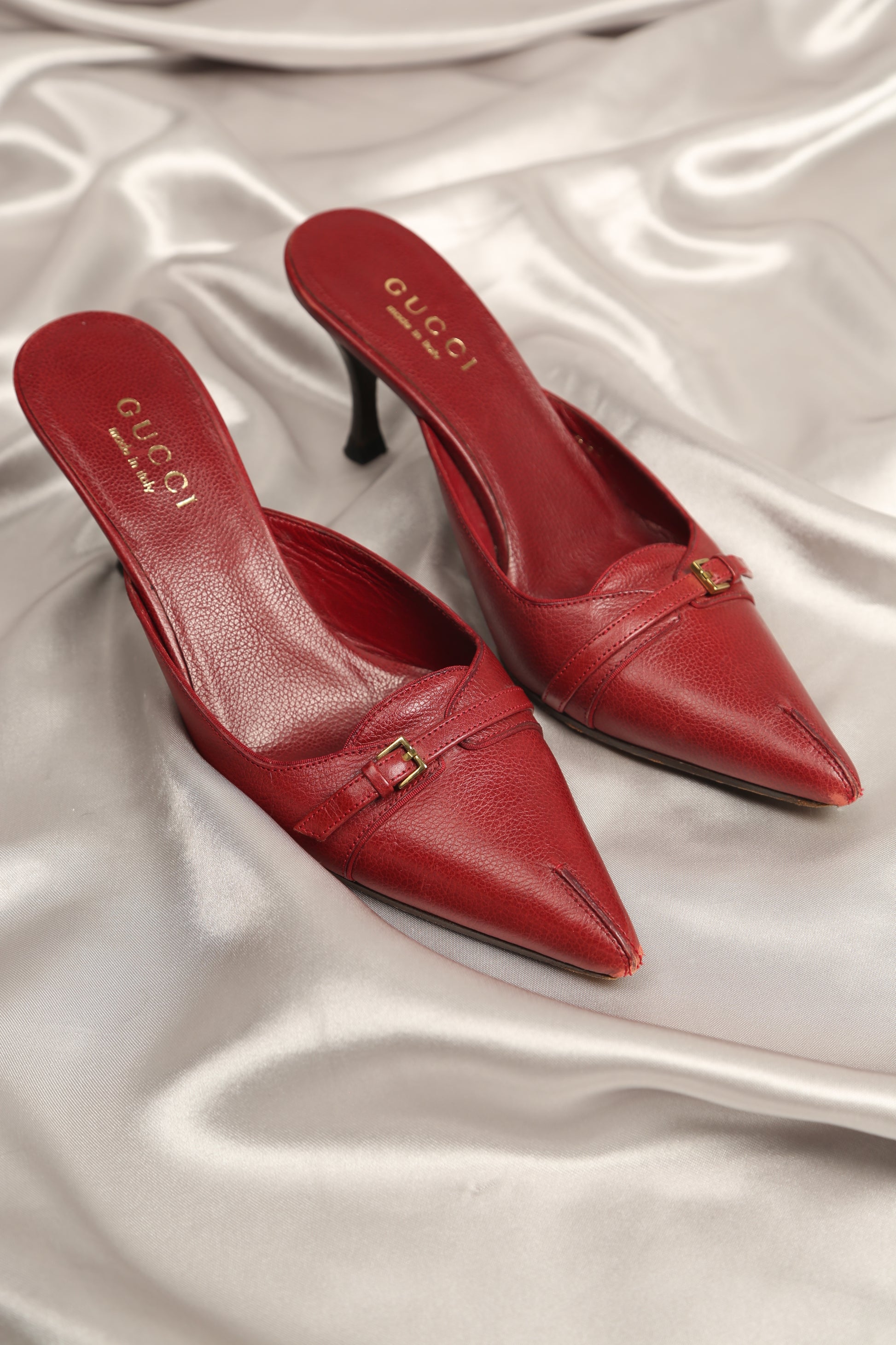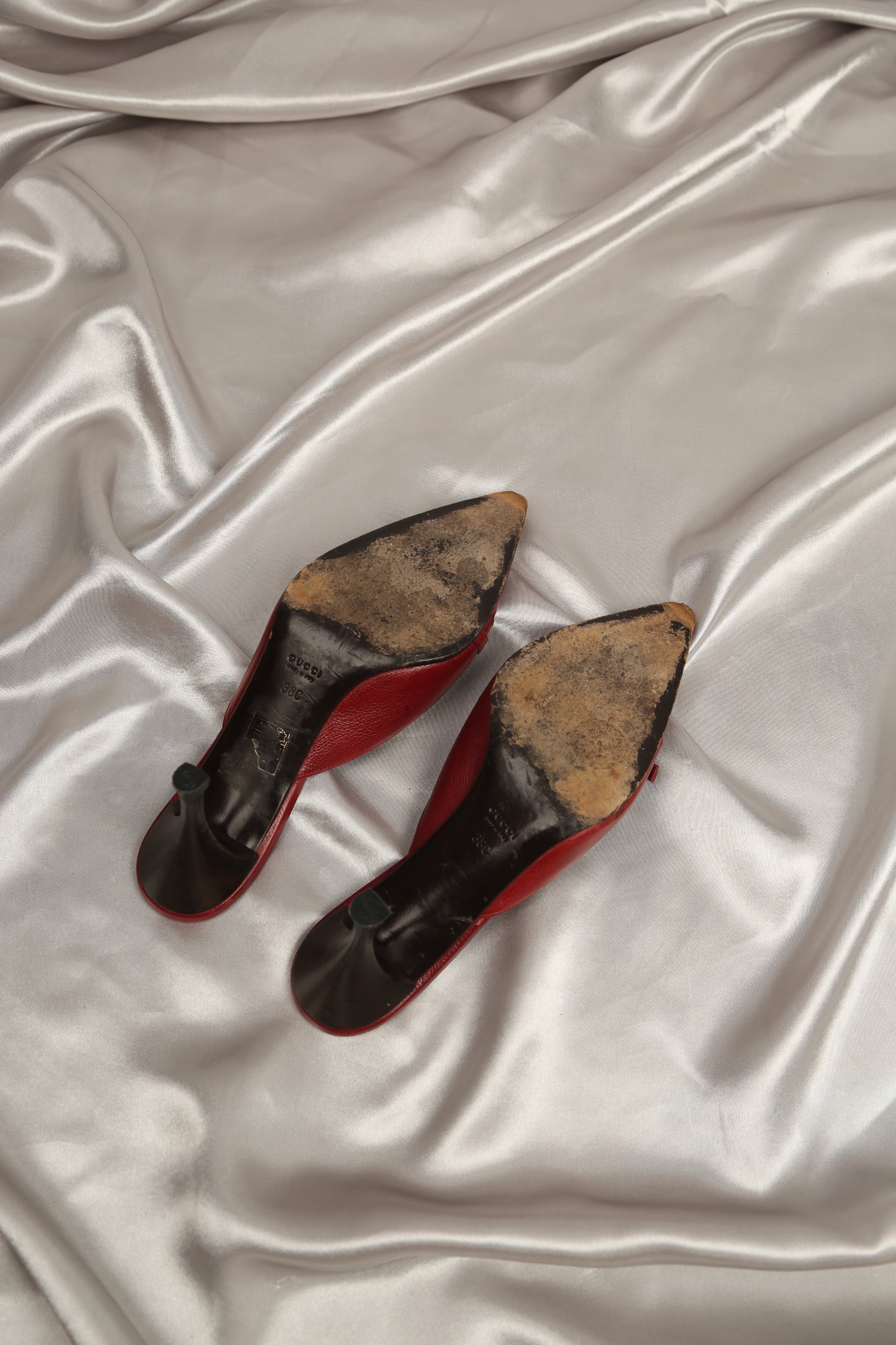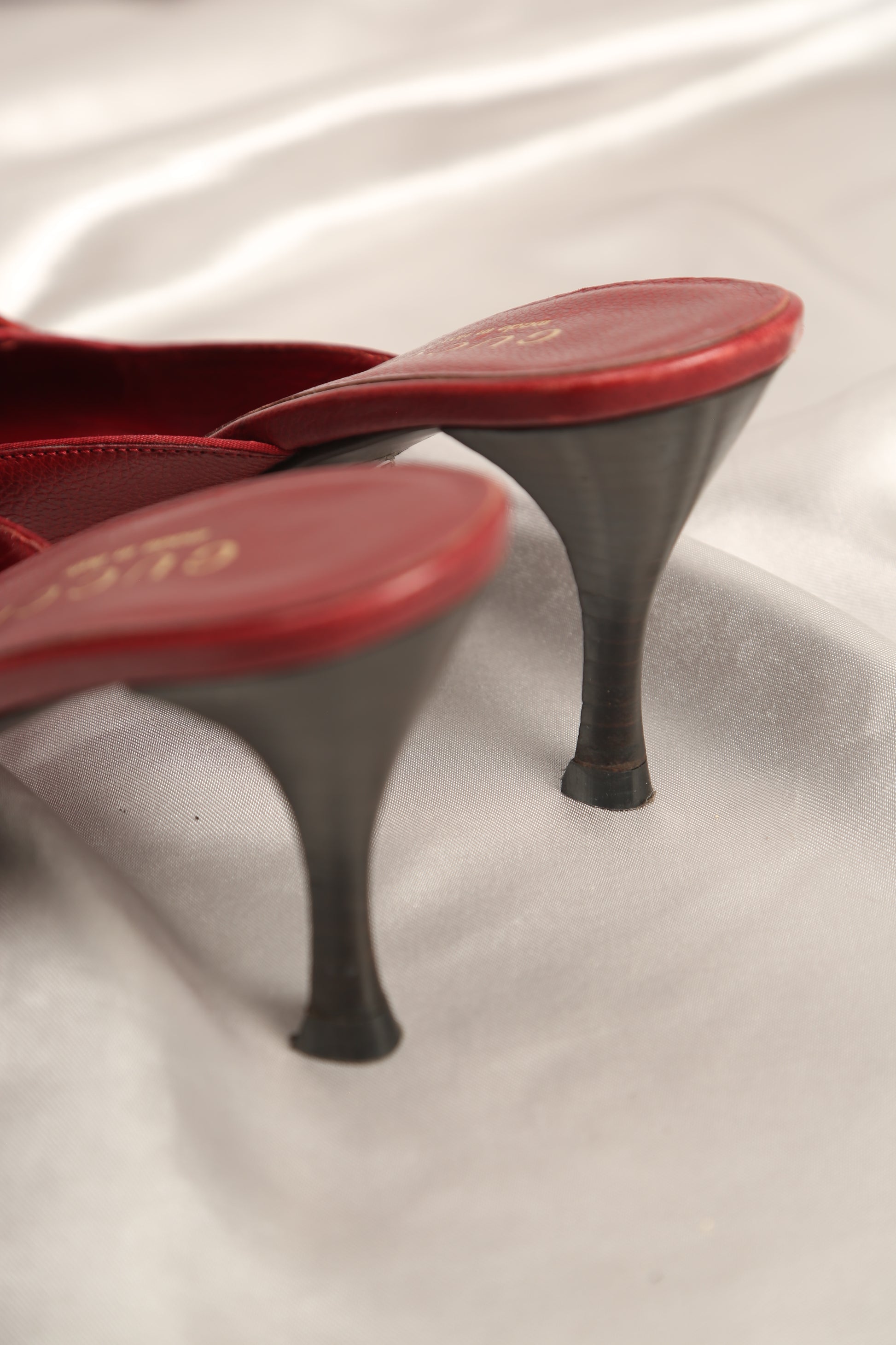 Extremely rare vintage Gucci mules in a super trendy Burgundy hue. Perfect for making a statement with any outfit, these rare finds. Whether you're dressing up for a night out or adding a pop of color to your everyday look, these vintage Gucci mules are the epitome of chic elegance. Despite signs of wear on the toe and sole, their timeless appeal remains intact. Rest assured, we've replaced the heel tips, ensuring they feel brand new with every step.