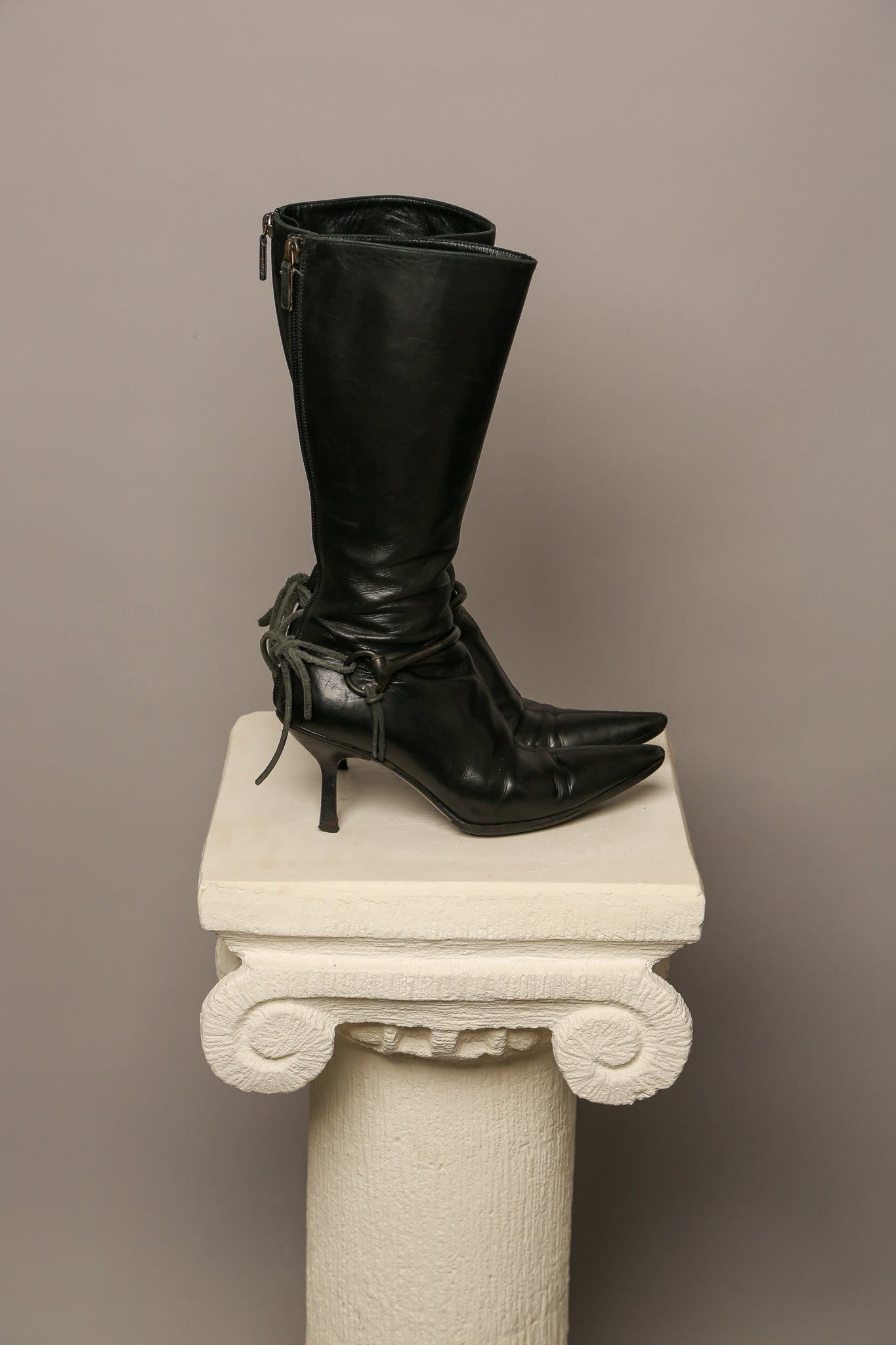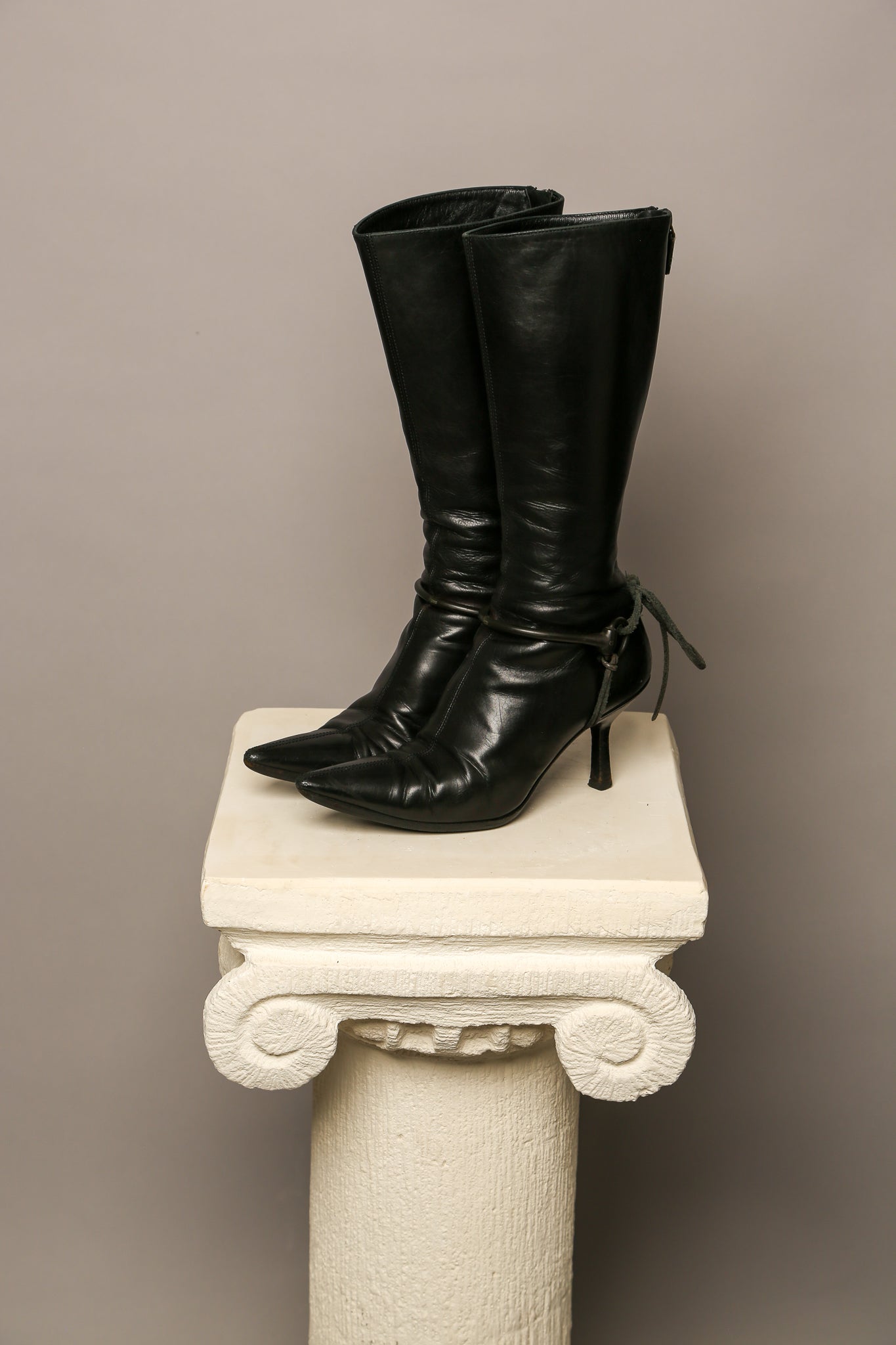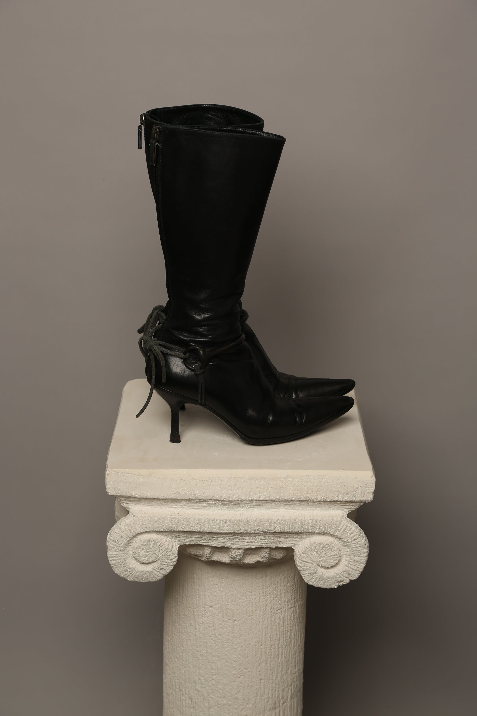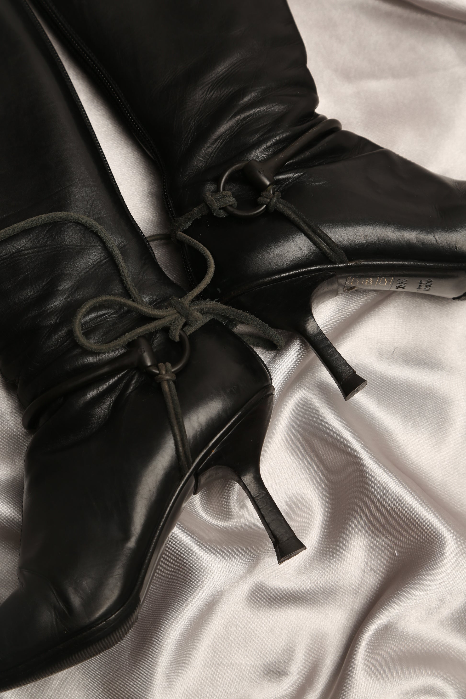Iconic style with these super trendy Gucci boots is reminiscent of the Tom Ford era, famously donned by fashion girlie Kendall Jenner. Crafted from the softest lambskin leather in black. These boots feature the iconic horse-bit detail, exuding a luxurious and timeless appeal.